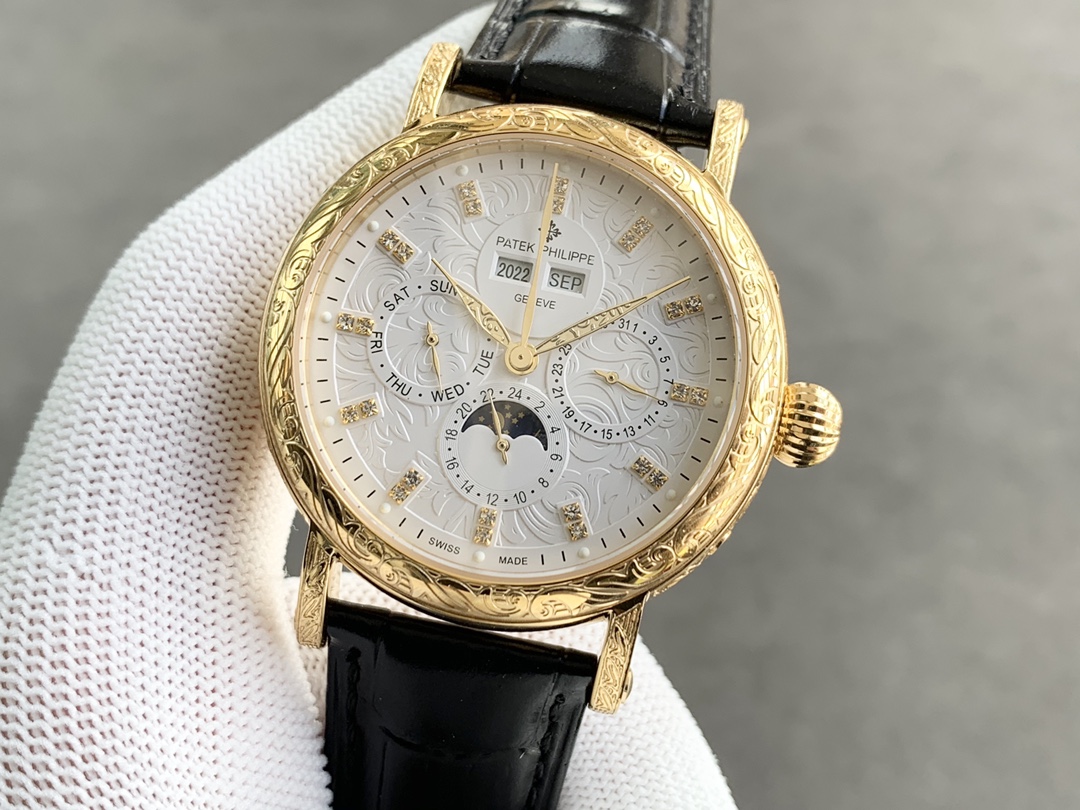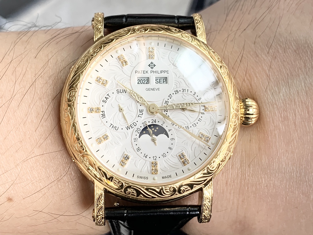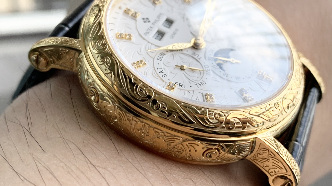 Strap: Classic Italian calfskin strap with clear texture and excellent quality. Paired with the top-level Patek Philippe lantern buckle, universally original and stress-free.