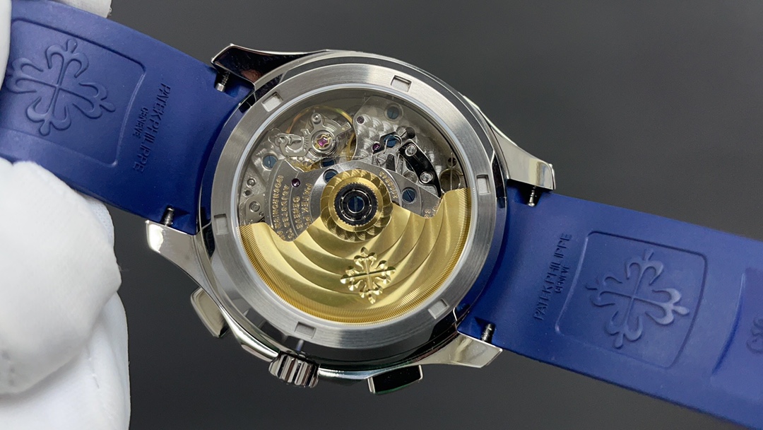 【Movement】: The watch is powered by the Patek Philippe CH28 chronograph movement, featuring automatic winding, a column wheel, vertical clutch, and a flyback function. The 6 o’clock position includes a 60-minute counter and a 12-hour counter, with the two counters stacked together (the 60-minute counter on the outer ring and the 12-hour counter on the inner ring). The 6 o’clock counter only has a 60-minute counter and does not include a 12-hour counter.