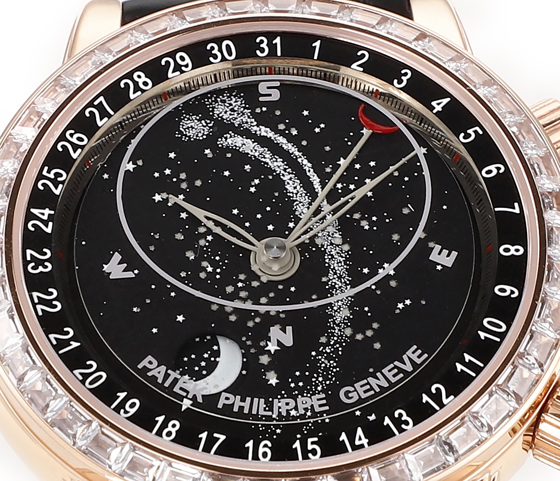 In the Patek Philippe Starry Sky, the moon on the watch changes according to the moon in the sky, reflecting the different phases of the moon (from crescent to full moon). The superluminova has been enhanced, illuminating the entire surface of the watch.