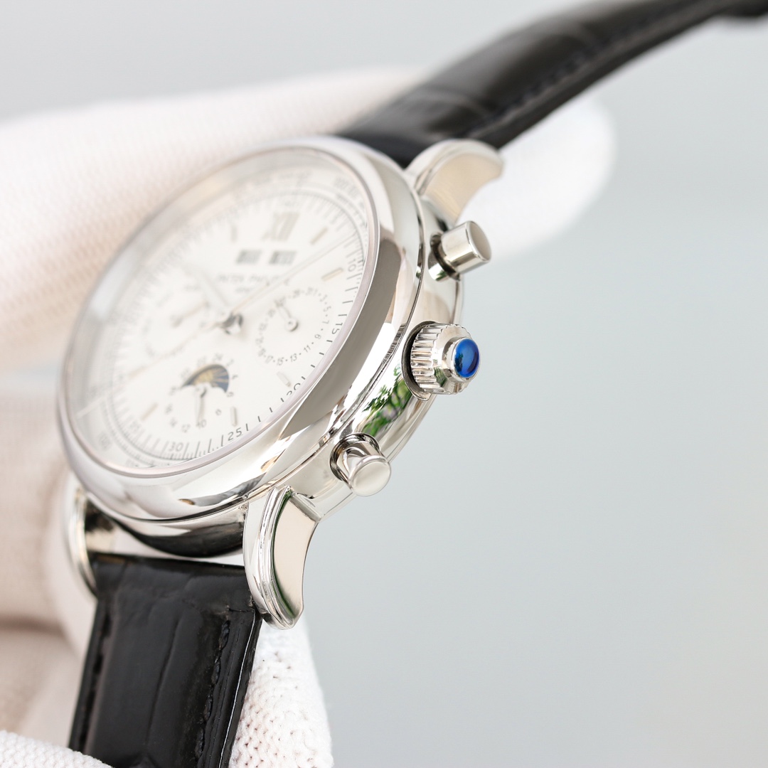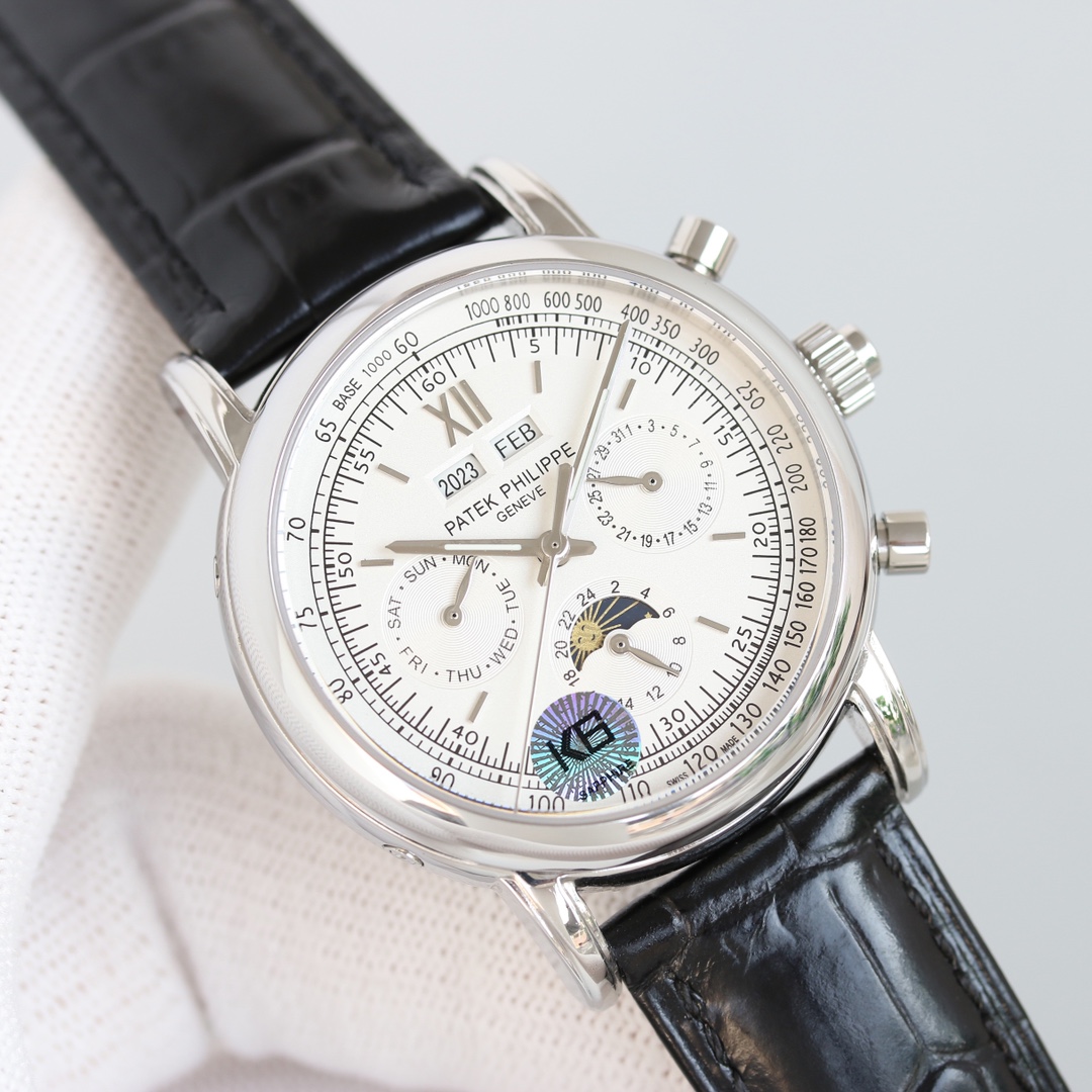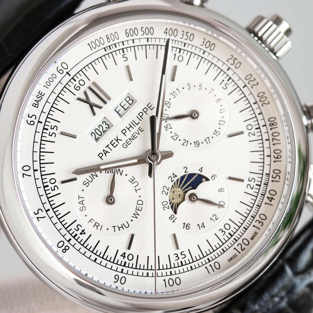 Dial: The dial features various functional elements. The left sub-dial displays the day of the week, the right sub-dial indicates the date, the bottom sub-dial shows the 24-hour time, and the upper windows display the year on the left and the month on the right. It is a fully functional and practical timepiece.