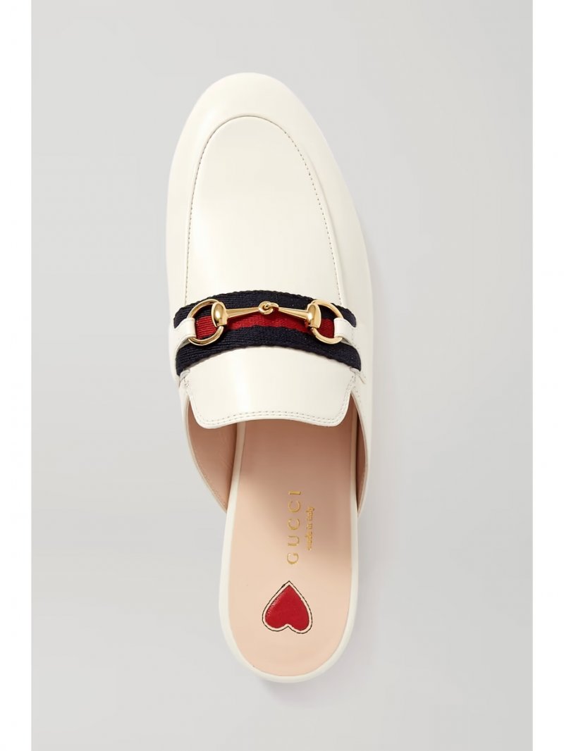 - Off-white leather (Goat), green and red canvas