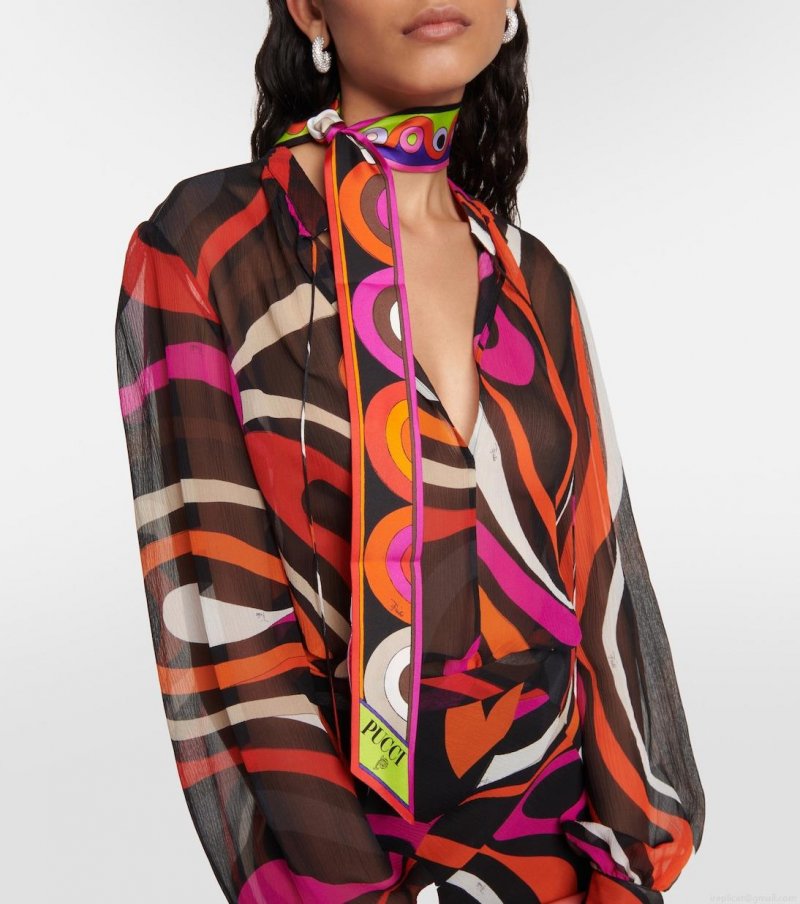 The iconic psychedelic swirling motif is a brand signature, which earned Pucci the title "Prince of Prints". Made from silk twill, this thin scarf with the Onde And Iride print is perfect for wearing around your neck or wrapped around the handle of your favorite handbag.