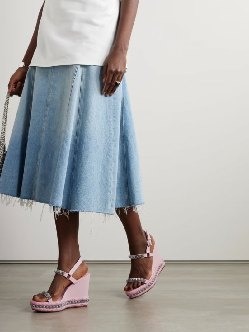 - Wedge heel measures approximately 110mm/ 4.5 inches with a 35mm/ 1.5 inch platform