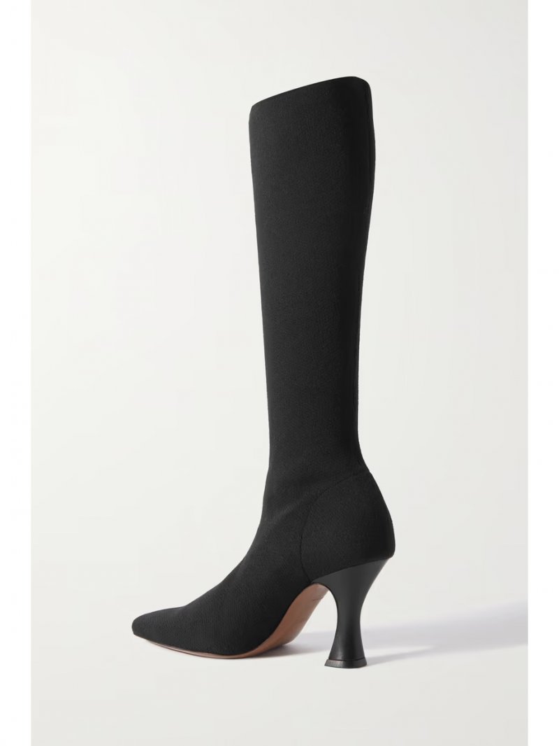 - Black stretch-knit