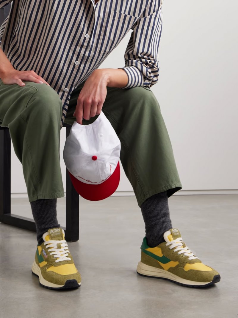 - Army-green suede (Cow), forest-green leather (Cow), mustard shell