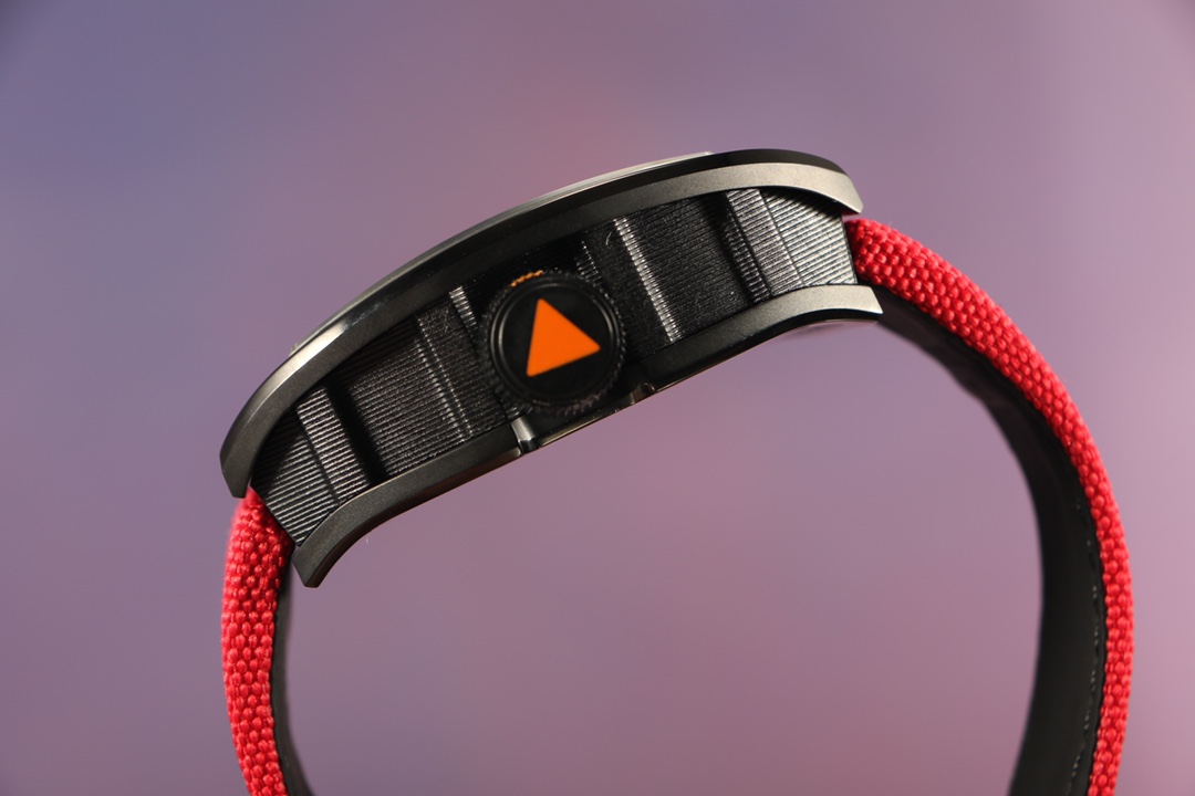 The watch strap is available in two options: Velcro strap with TPT carbon fiber material buckle or rubber strap with folding clasp and spring plate.