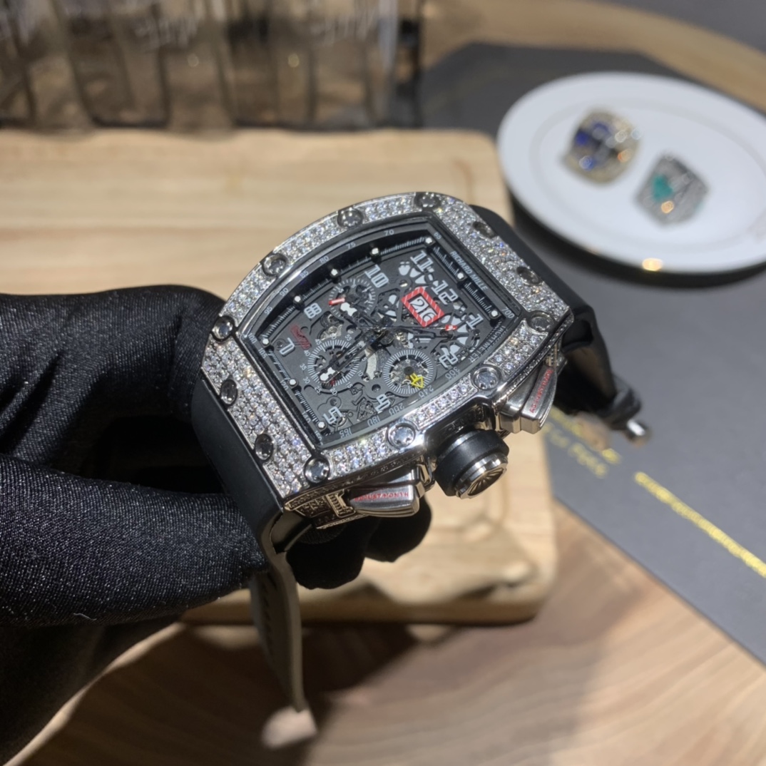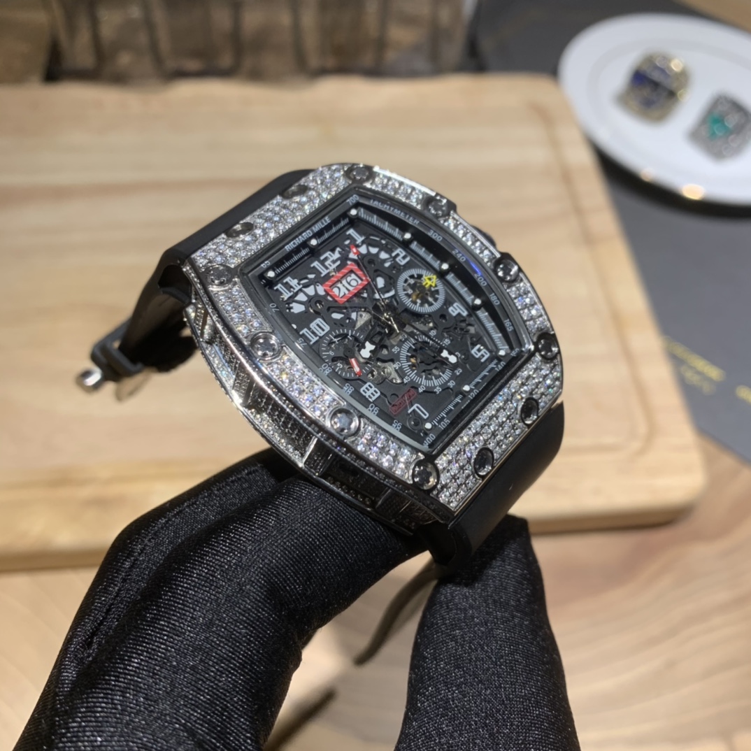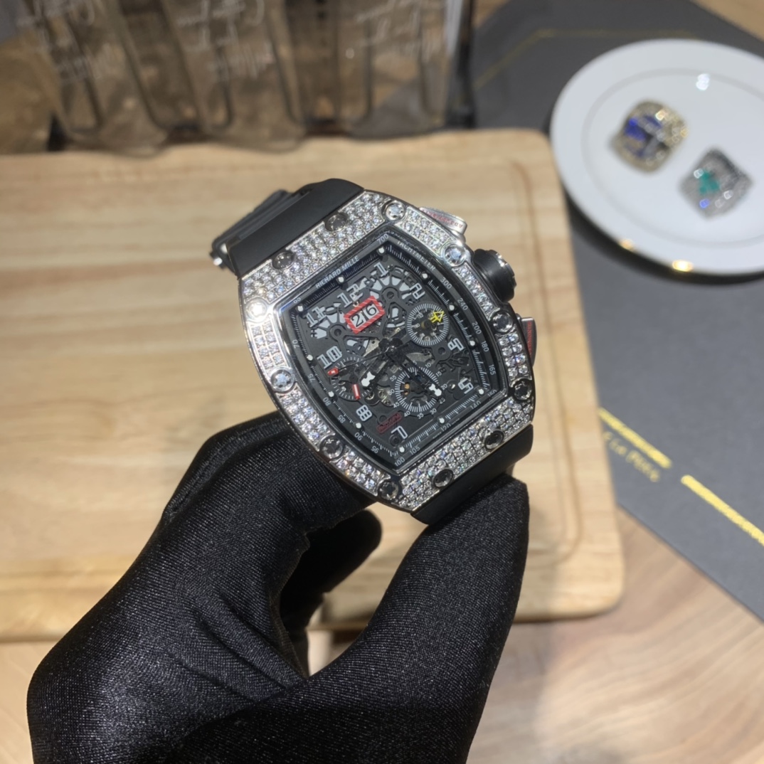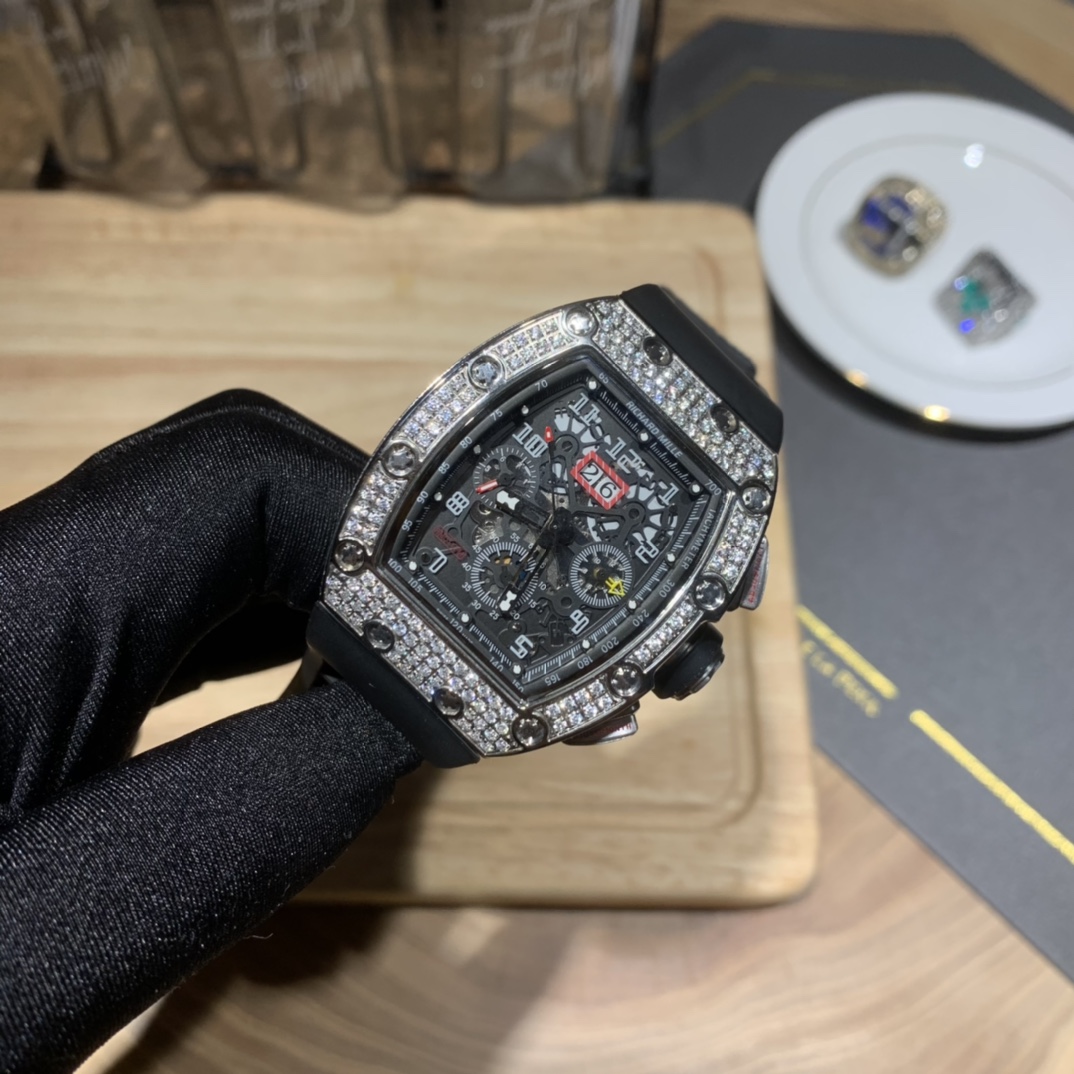 • Richard Mille RM-011 Men’s Full Diamond Six-Hand Multifunctional Watch