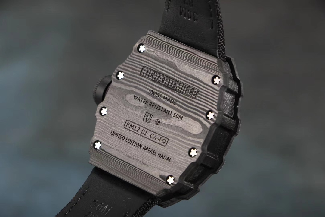 Revisiting the legendary RM012 movement, this timepiece seamlessly integrates material innovation with horological architecture. The RM12-01 Tourbillon watch features the distinctive RM12-01 Tourbillon and is exclusively offered in various limited editions at authorized boutiques in the Americas.
