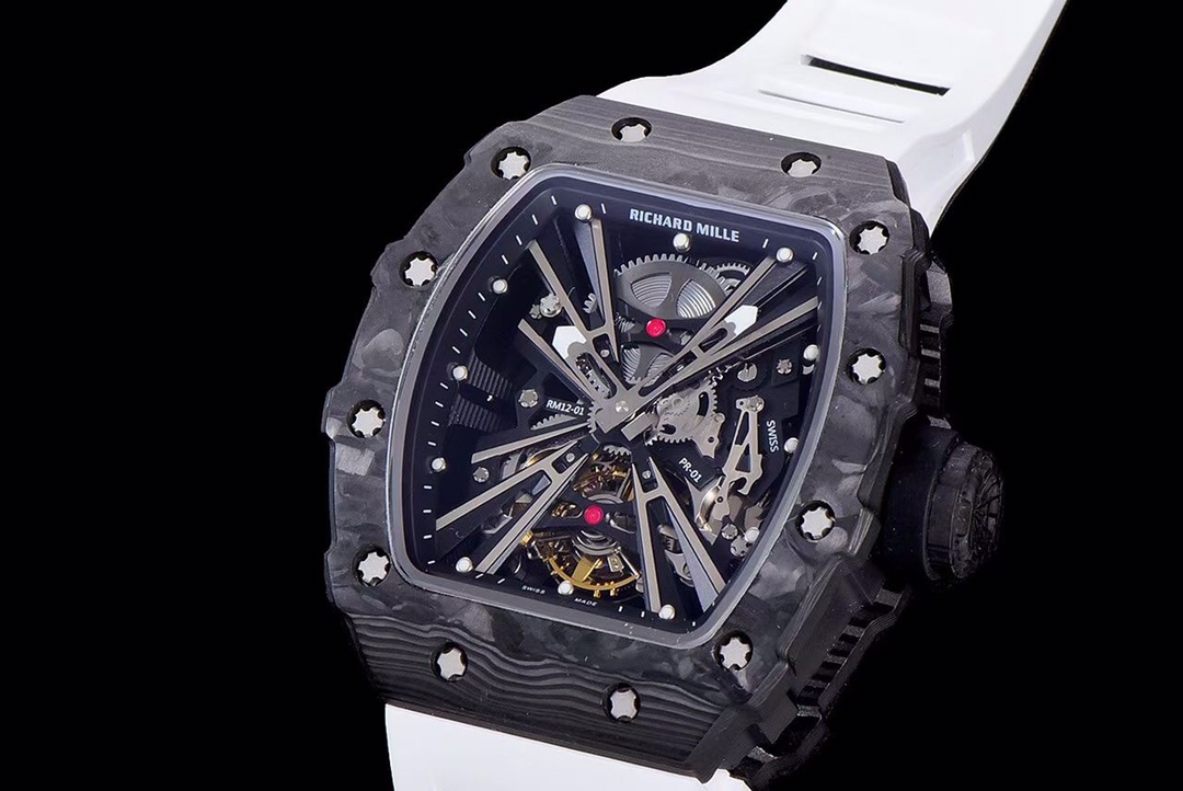 The RM 12-01 Tourbillon Limited Editions is an upgraded version based on the RM 012 movement, which was released in 2006. It incorporates elements inspired by racing chassis into the movement bridges, making it a highly contemporary timepiece.
