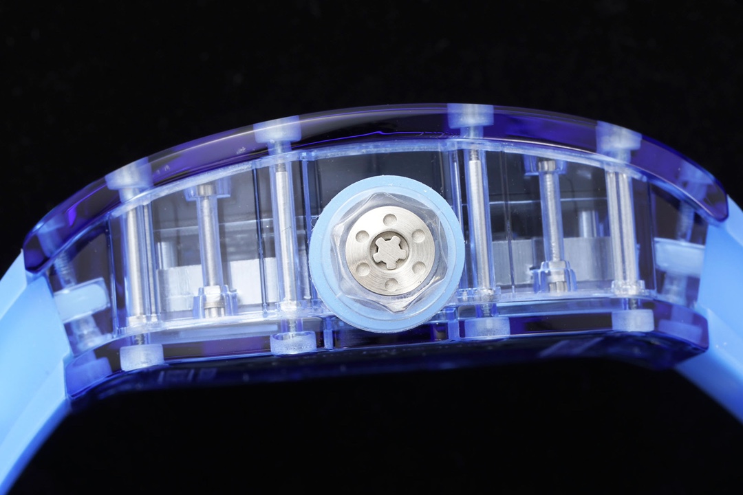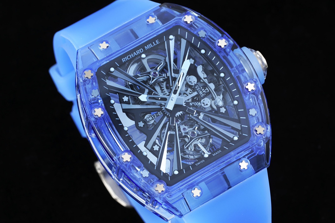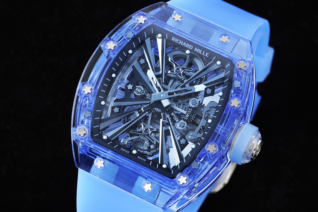 Blending material innovation with watch architecture, the legendary RM12-01 Tourbillon Sapphire Transparent edition is introduced. Richard Mille breaks technological barriers to create this extraordinary timepiece with a transparent movement, resulting in a visually stunning appearance for the RM12-01.