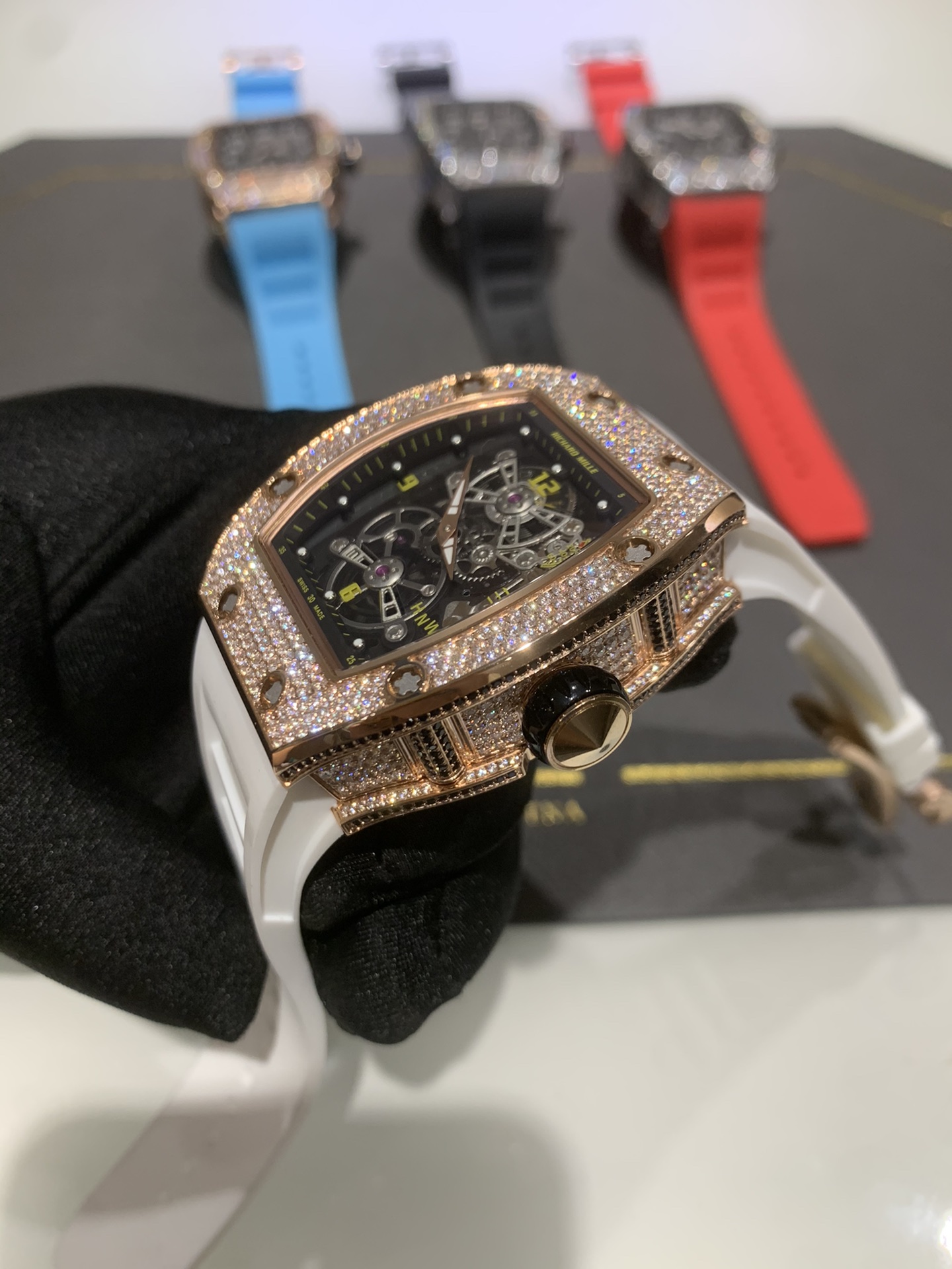 The RM 17-01 embodies the traditional and exceptional concept of high-end watchmaking. The RM017 tourbillon movement encapsulates all our passion for mechanical innovation. The iconic barrel-shaped case showcases sleek and elegant lines, highlighting its graceful and technically exquisite movement.
