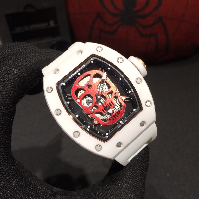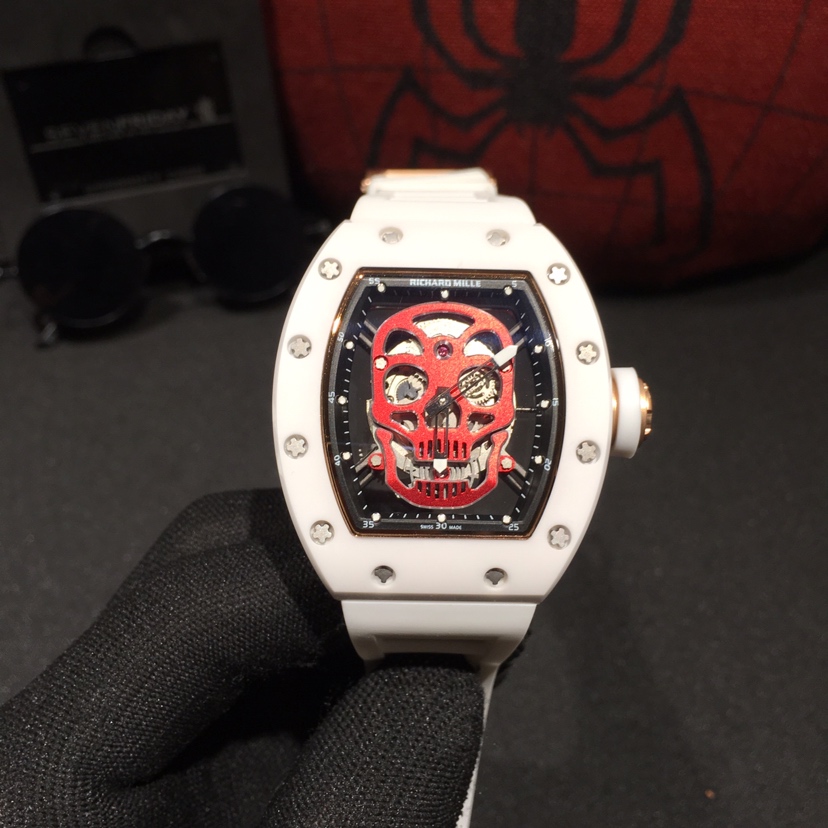 The RM 52-01 Skull Tourbillon watch is another masterpiece from Richard Mille. Following in the footsteps of the RM052, it is the second skull-themed timepiece introduced in 2012 and features the iconic skull motif representing the Richard Mille brand: a non-traditional approach that focuses on innovation and development, with each new watch embodying the call for horological revolution.