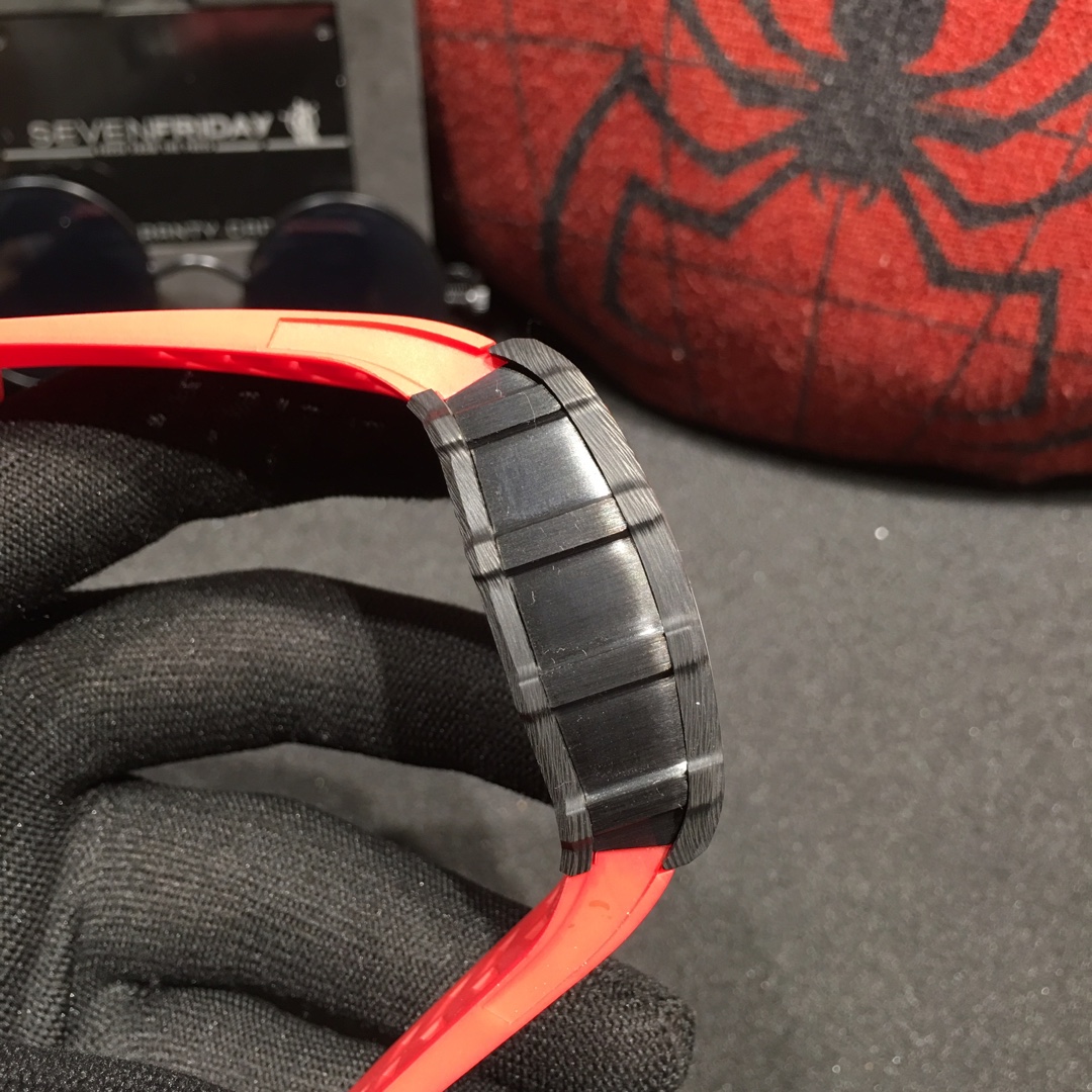The carbon fiber with its unique wave-like luster and sharp case lines further accentuates the sporty style of this watch. It is a timepiece full of dynamism and vitality.
