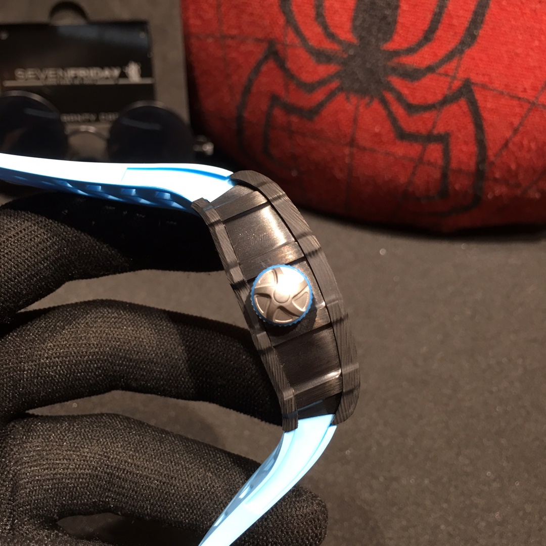 The carbon fiber with its unique wave-like luster and sharp case lines further accentuates the sporty style of this watch. It is a timepiece full of dynamism and vitality.