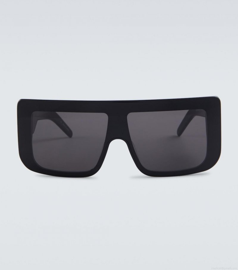 The Documenta flat-top sunglasses from Rick Owens have a sleek, square shape with matching frames and lenses. These sunglasses have a subtly printed brand logo on the temples.