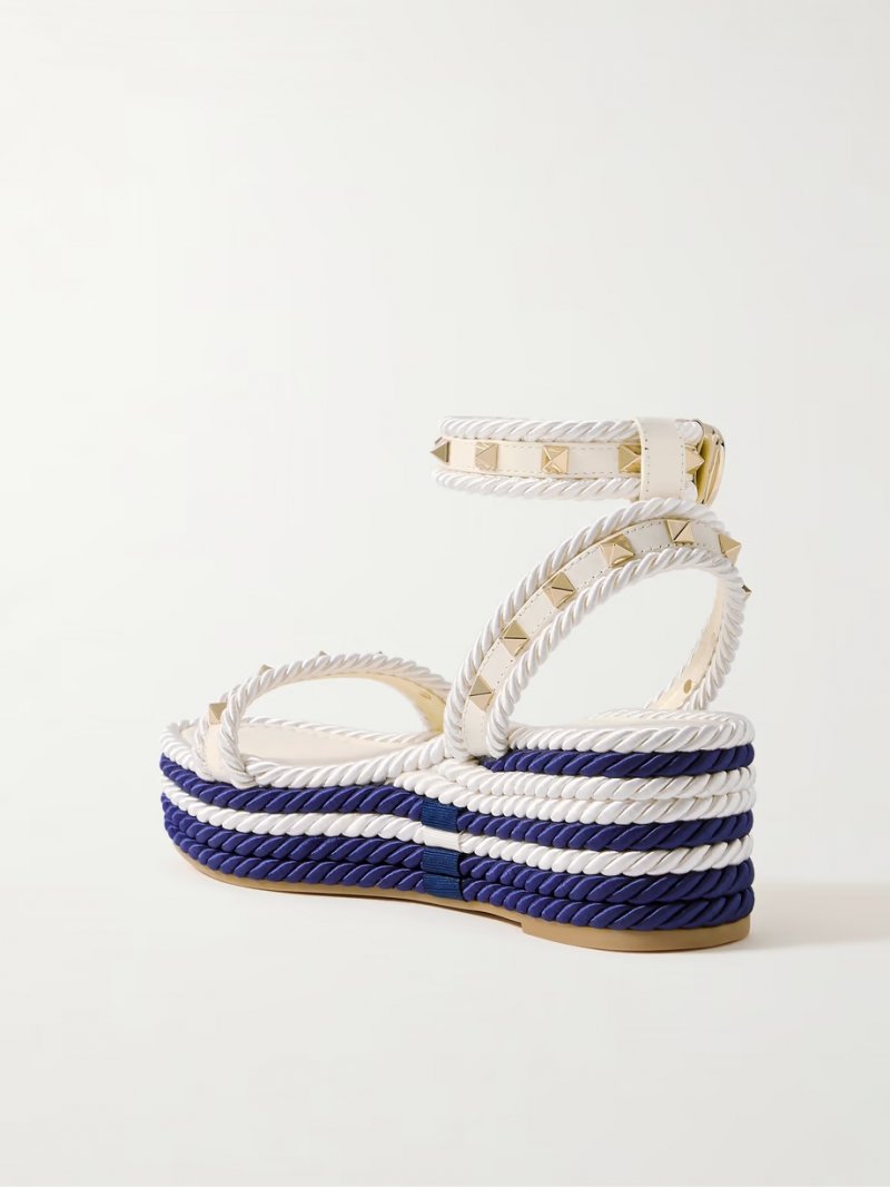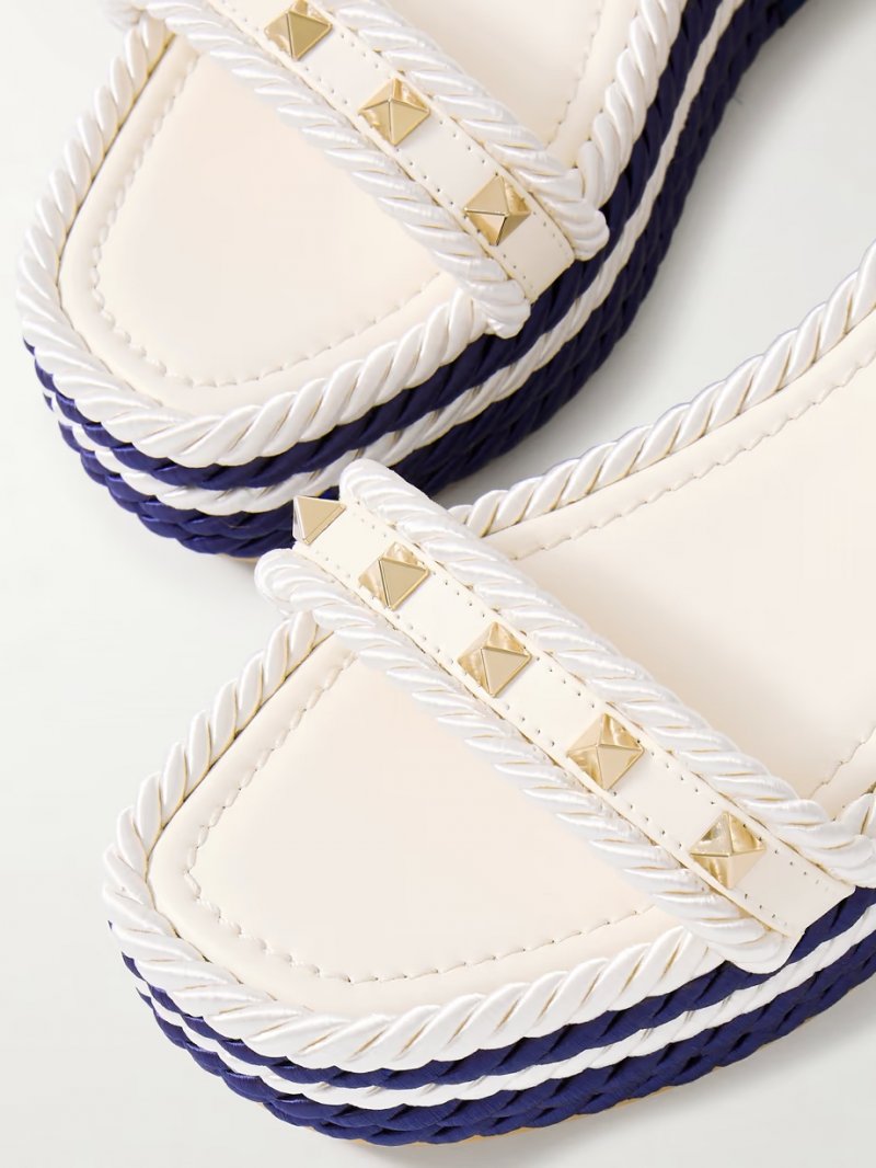 - White and navy silk, cream leather (Calf)