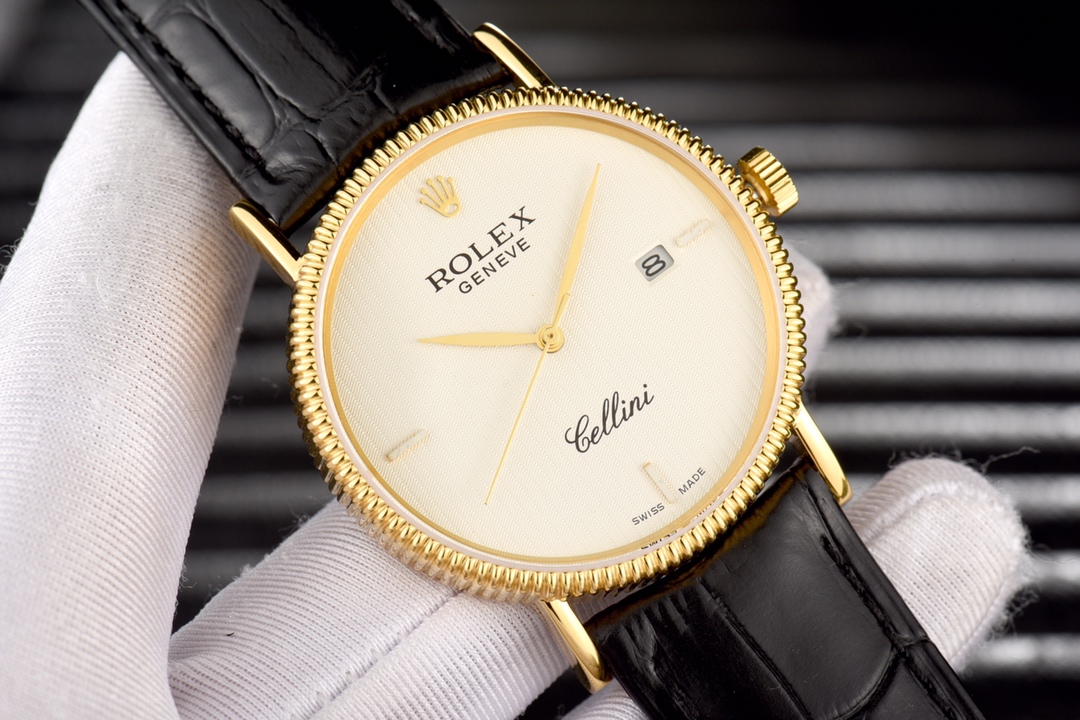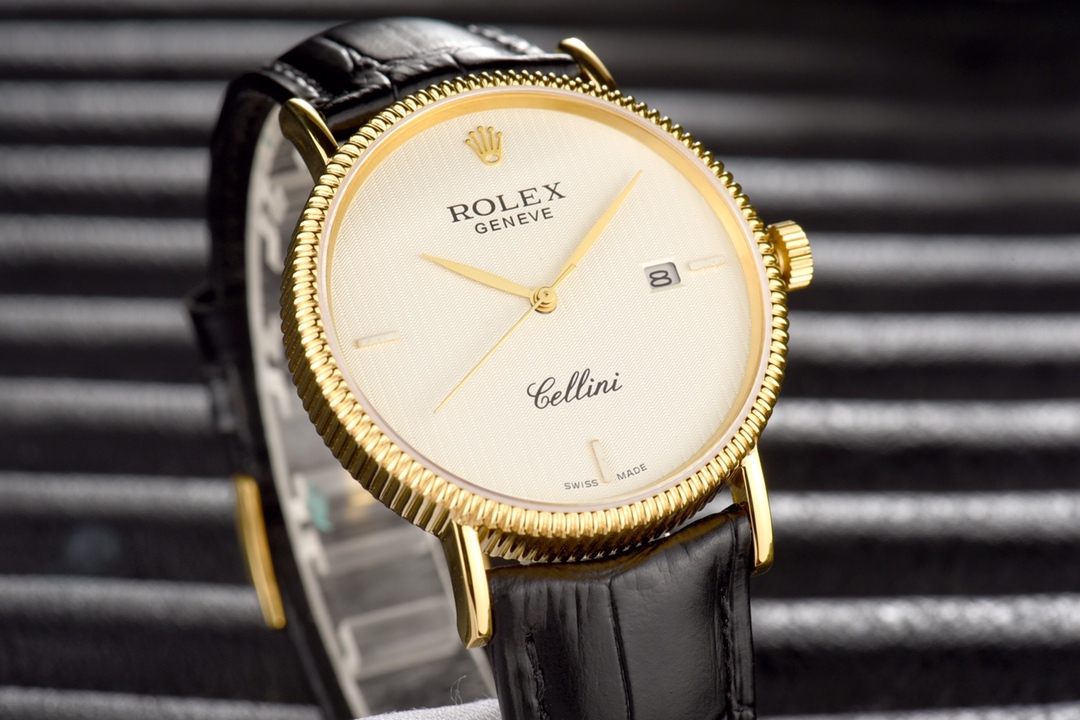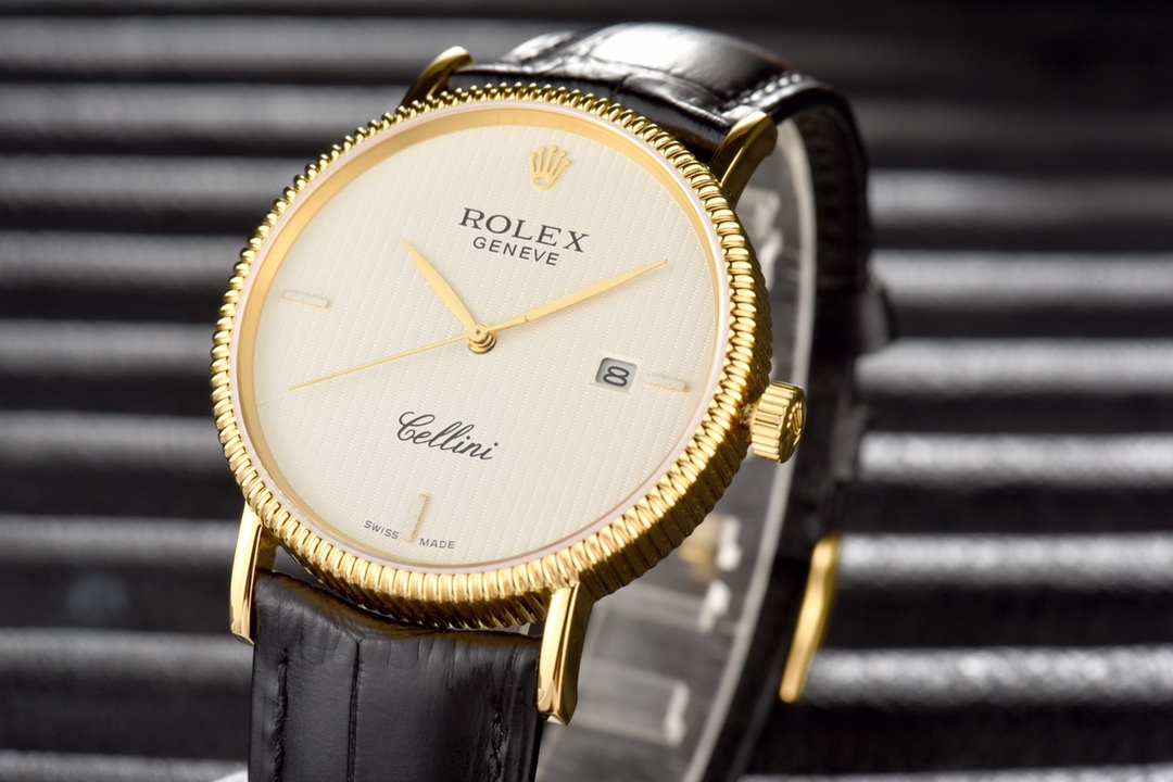 This Rolex Cellini series men’s leather strap wristwatch showcases the exquisite craftsmanship and elegant design of Rolex in the field of watchmaking. With a diameter of 40mm and an ultra-thin thickness, it presents a delicate and refined appearance. The imported 9015 movement ensures accurate and reliable time display. The top-grade 316L stainless steel case and Italian imported cowhide strap exhibit high quality and elegance. The sapphire glass protects the dial and provides a clear view. With a water resistance of 30 meters, it meets the waterproof needs of daily life. This Rolex Cellini series men’s leather strap wristwatch is an ideal choice for gentlemen who pursue an elegant and mature style.
