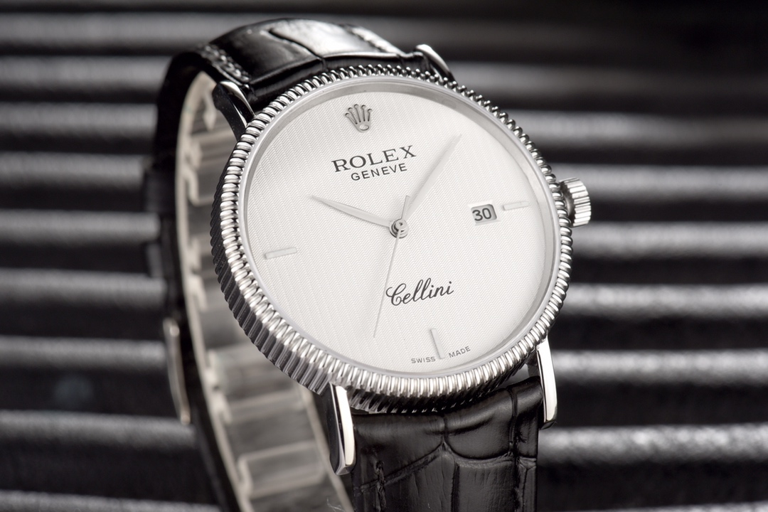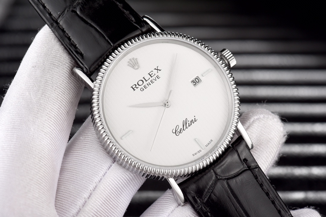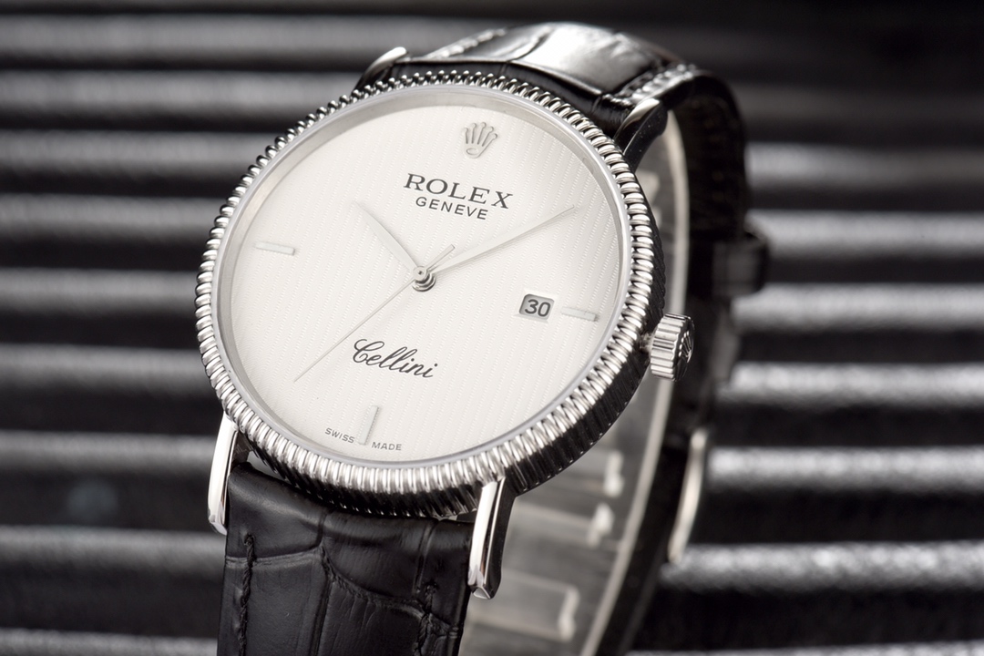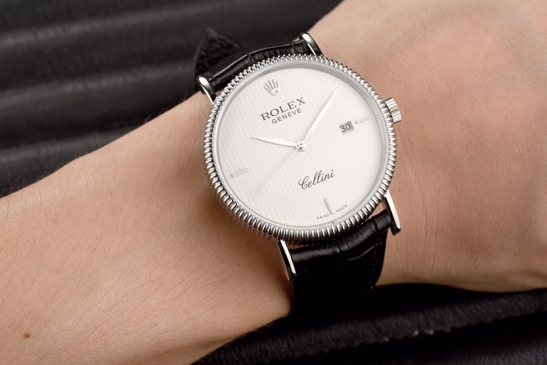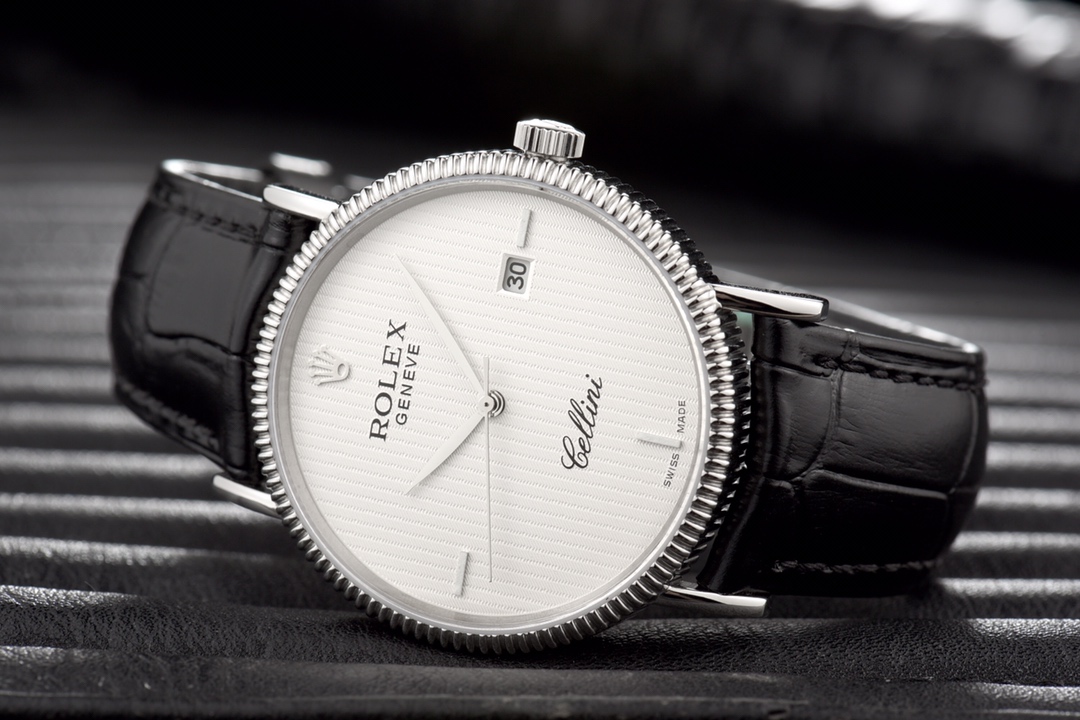 This Rolex Cellini series men’s leather strap wristwatch showcases the exquisite craftsmanship and elegant design of Rolex in the field of watchmaking. With a diameter of 40mm and an ultra-thin thickness, it presents a delicate and refined appearance. The imported 9015 movement ensures accurate and reliable time display. The top-grade 316L stainless steel case and Italian imported cowhide strap exhibit high quality and elegance. The sapphire glass protects the dial and provides a clear view. With a water resistance of 30 meters, it meets the waterproof needs of daily life. This Rolex Cellini series men’s leather strap wristwatch is an ideal choice for gentlemen who pursue an elegant and mature style.