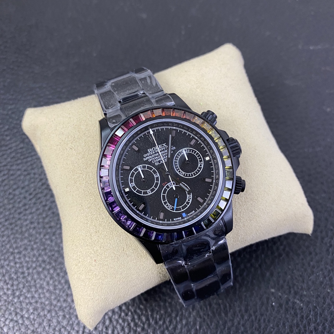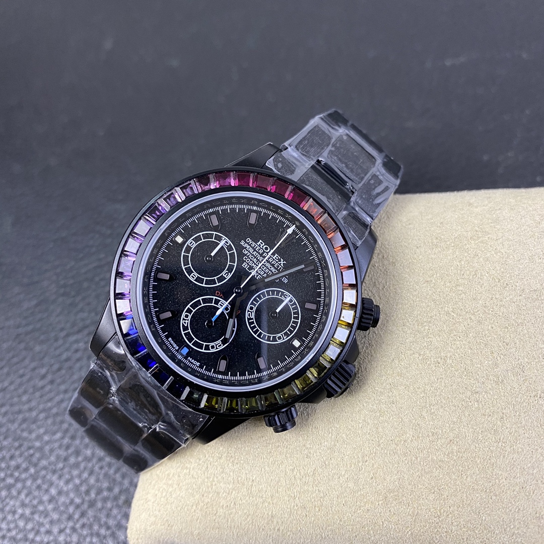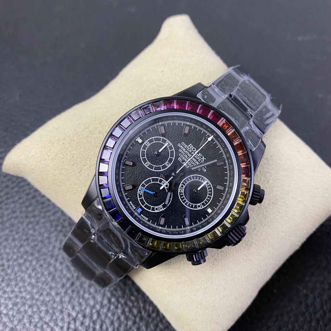 The Rolex Daytona watch exudes a sense of fashion and sportiness with its 40mm x size and sporty style. Equipped with a 7750 automatic movement, it ensures precise and reliable time display. The watch features hour, minute, and second functions, and is equipped with luminescent hands and markers, ensuring clear readability even in low-light environments. With a water resistance of 50 meters, the watch is suitable for waterproof demands in daily life. The sapphire crystal glass provides excellent scratch resistance and clear time display. The carbon fiber case exhibits lightweight and durability, presenting a modern feel. Equipped with a fabric strap, the watch adds a sporty style and a sense of fashion. This Rolex Daytona watch, with its outstanding performance and fashionable design, is an ideal choice for individuals who value quality and a sporty style.