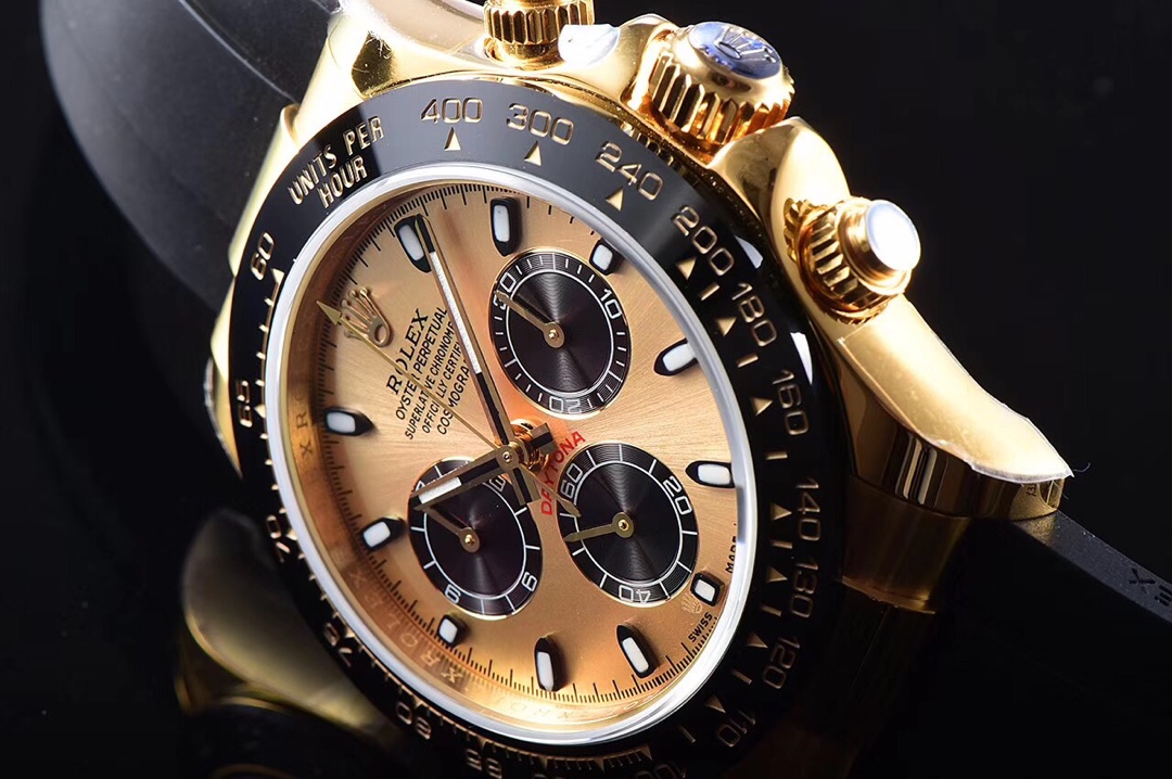 Rolex Cosmograph Daytona Series – This Rolex Cosmograph Daytona watch is renowned for its classic design, exceptional timing function, and precise performance. With a size of 40mm x 12.2mm, it is suitable for both men and women. The Swiss 7750 movement ensures accurate and reliable time display and timing function. The superluminova coating allows for easy time reading in any lighting conditions. With a water resistance of over 100 meters, this watch is suitable for water activities in daily life. The sapphire crystal glass protects the dial and provides a clear view. The folding clasp and stainless steel case showcase durability and a classic appearance. It comes with a black Oysterflex rubber strap that is both comfortable and durable. The Rolex Cosmograph Daytona watch exemplifies Rolex’s excellent craftsmanship and precise performance in the field of watchmaking, making it an ideal choice for those pursuing refinement and timing function.