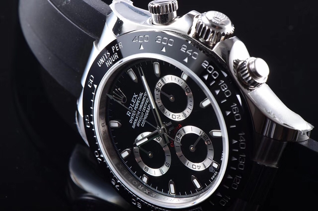Rolex Cosmograph Daytona Series – This Rolex Cosmograph Daytona watch is renowned for its classic design, exceptional timing function, and precise performance. With a size of 40mm x 12.2mm, it is suitable for both men and women. The Swiss 7750 movement ensures accurate and reliable time display and timing function. The superluminova coating allows for easy time reading in any lighting conditions. With a water resistance of over 100 meters, this watch is suitable for water activities in daily life. The sapphire crystal glass protects the dial and provides a clear view. The folding clasp and stainless steel case showcase durability and a classic appearance. It comes with a black Oysterflex rubber strap that is both comfortable and durable. The Rolex Cosmograph Daytona watch exemplifies Rolex’s excellent craftsmanship and precise performance in the field of watchmaking, making it an ideal choice for those pursuing refinement and timing function.