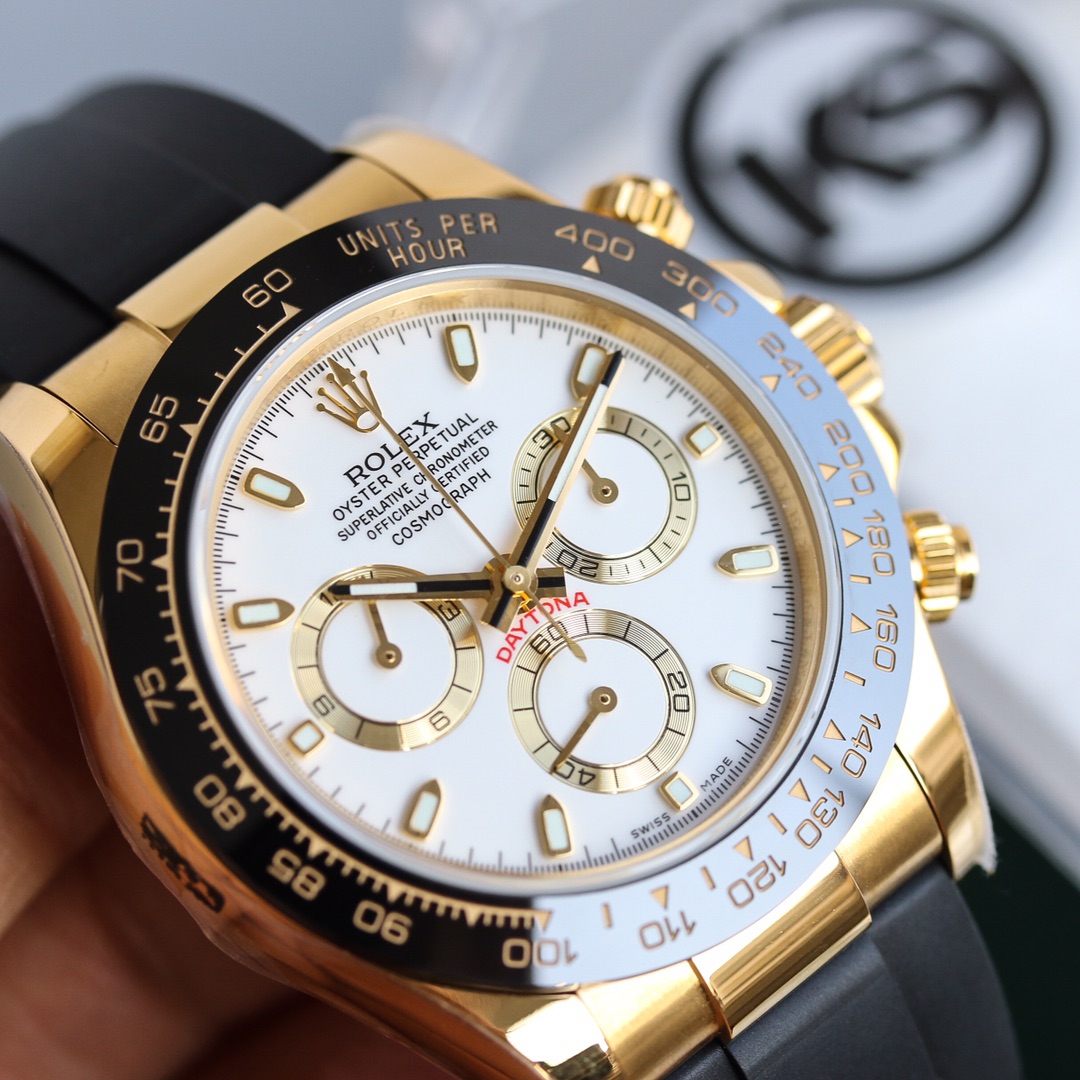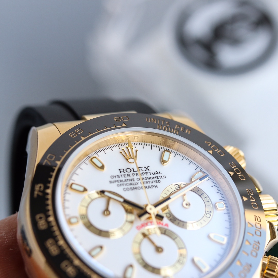 Rolex Cosmograph Daytona Series – This Rolex Cosmograph Daytona watch is renowned for its classic design, exceptional timing function, and precise performance. With a size of 40mm x 12.2mm, it is suitable for both men and women. The Swiss 7750 movement ensures accurate and reliable time display and timing function. The superluminova coating allows for easy time reading in any lighting conditions. With a water resistance of over 100 meters, this watch is suitable for water activities in daily life. The sapphire crystal glass protects the dial and provides a clear view. The folding clasp and stainless steel case showcase durability and a classic appearance. It comes with a black Oysterflex rubber strap that is both comfortable and durable. The Rolex Cosmograph Daytona watch exemplifies Rolex’s excellent craftsmanship and precise performance in the field of watchmaking, making it an ideal choice for those pursuing refinement and timing function.