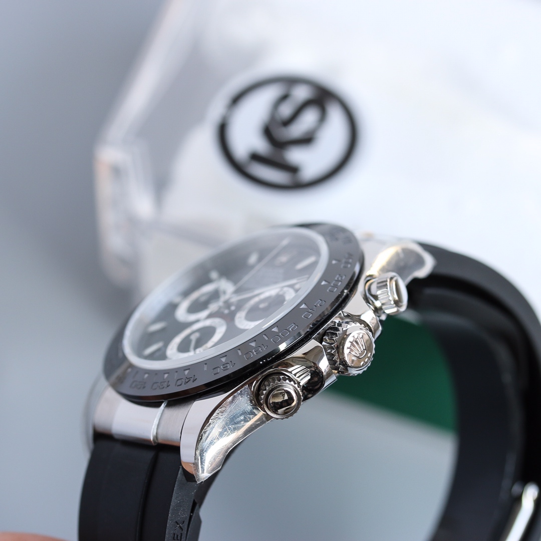 Rolex Cosmograph Daytona Series – This Rolex Cosmograph Daytona watch is renowned for its classic design, exceptional timing function, and precise performance. With a size of 40mm x 12.2mm, it is suitable for both men and women. The Swiss 7750 movement ensures accurate and reliable time display and timing function. The superluminova coating allows for easy time reading in any lighting conditions. With a water resistance of over 100 meters, this watch is suitable for water activities in daily life. The sapphire crystal glass protects the dial and provides a clear view. The folding clasp and stainless steel case showcase durability and a classic appearance. It comes with a black Oysterflex rubber strap that is both comfortable and durable. The Rolex Cosmograph Daytona watch exemplifies Rolex’s excellent craftsmanship and precise performance in the field of watchmaking, making it an ideal choice for those pursuing refinement and timing function.