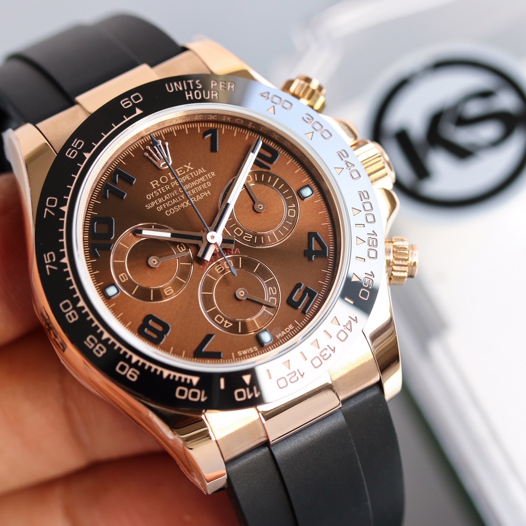 Rolex Cosmograph Daytona Series – This Rolex Cosmograph Daytona watch is renowned for its classic design, exceptional timing function, and precise performance. With a size of 40mm x 12.2mm, it is suitable for both men and women. The Swiss 7750 movement ensures accurate and reliable time display and timing function. The superluminova coating allows for easy time reading in any lighting conditions. With a water resistance of over 100 meters, this watch is suitable for water activities in daily life. The sapphire crystal glass protects the dial and provides a clear view. The folding clasp and stainless steel case showcase durability and a classic appearance. It comes with a black Oysterflex rubber strap that is both comfortable and durable. The Rolex Cosmograph Daytona watch exemplifies Rolex’s excellent craftsmanship and precise performance in the field of watchmaking, making it an ideal choice for those pursuing refinement and timing function.