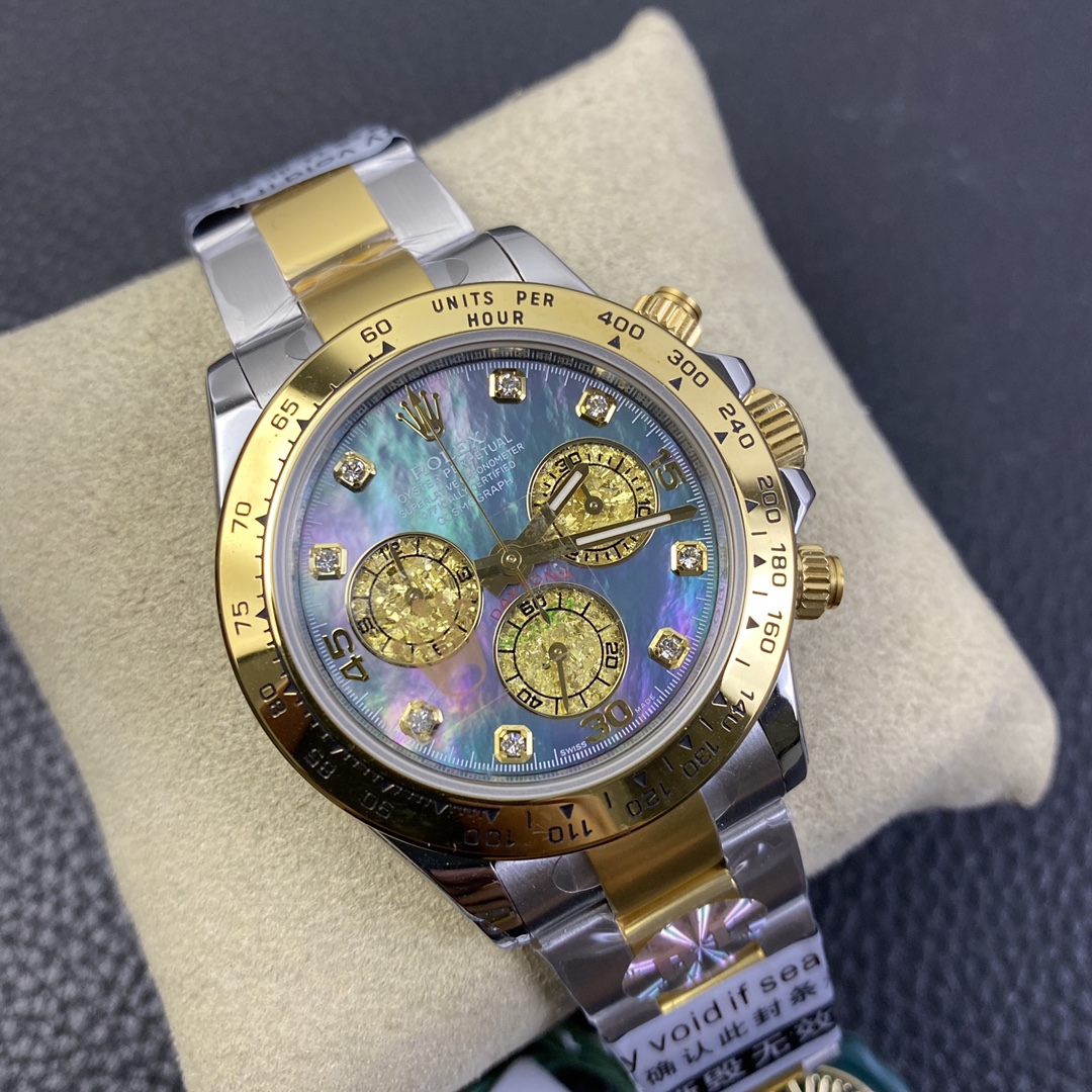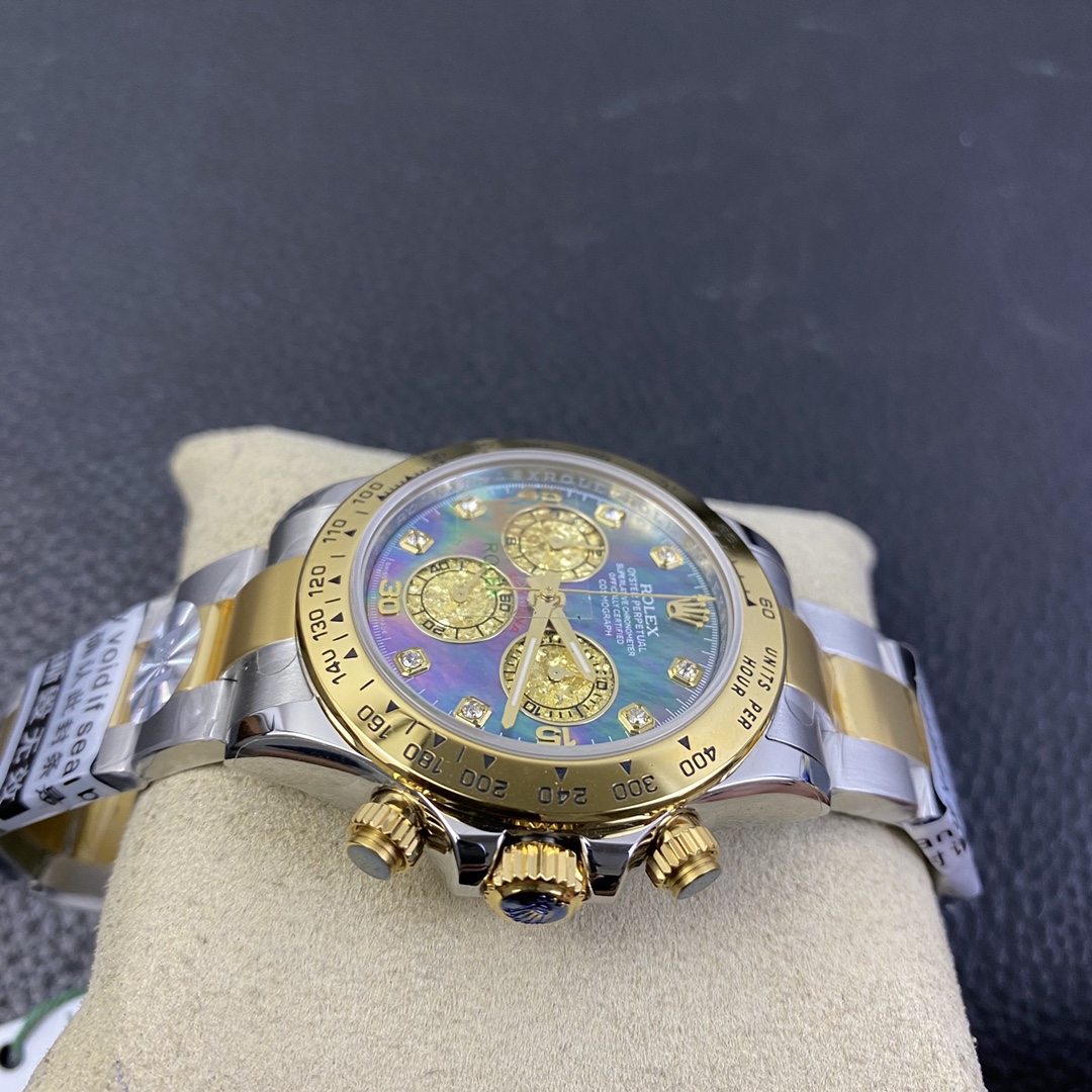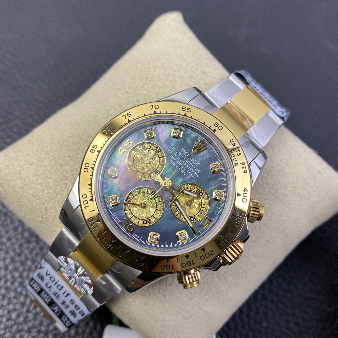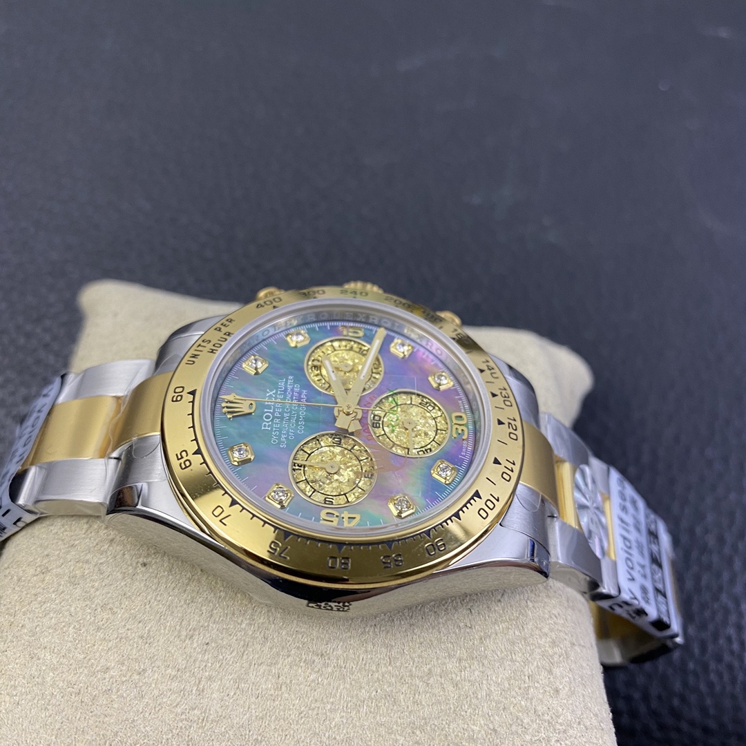 The Rolex Daytona collection is renowned for its classic 40mm size and sporty style. It is equipped with the Swiss 7750 movement, ensuring precise and reliable time display. The watch features hours, minutes, and seconds functions, allowing you to easily keep track of time. With a water resistance of over 100 meters, it is suitable for daily waterproof needs and underwater activities. The sapphire crystal glass provides excellent scratch resistance and clear time display. The folding clasp design enhances comfort during wear. The stainless steel case exhibits durability and high-quality craftsmanship, showcasing Rolex’s excellence. The Rolex Daytona collection, with its sporty style and outstanding performance, is an ideal choice for those who pursue fashion and functionality.
