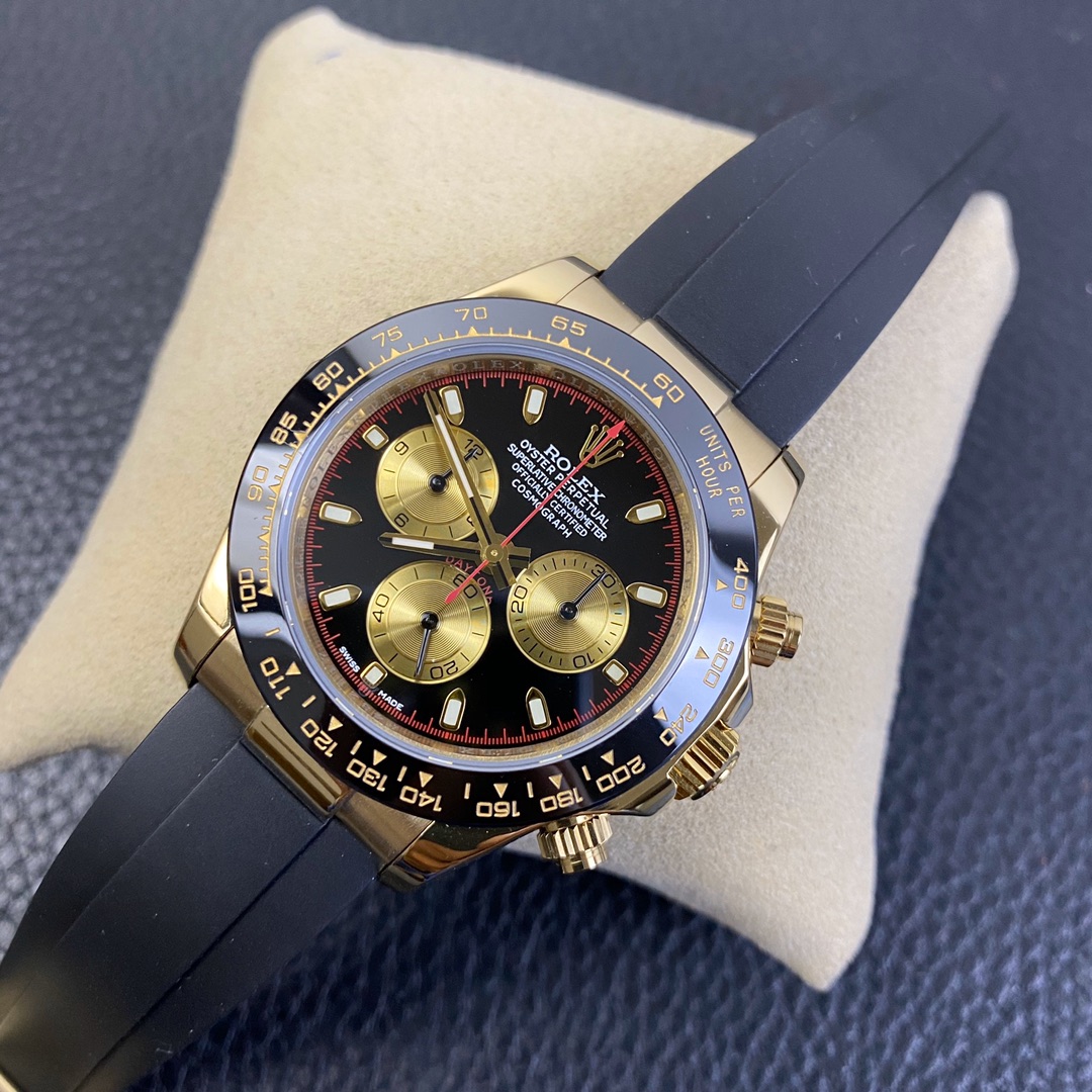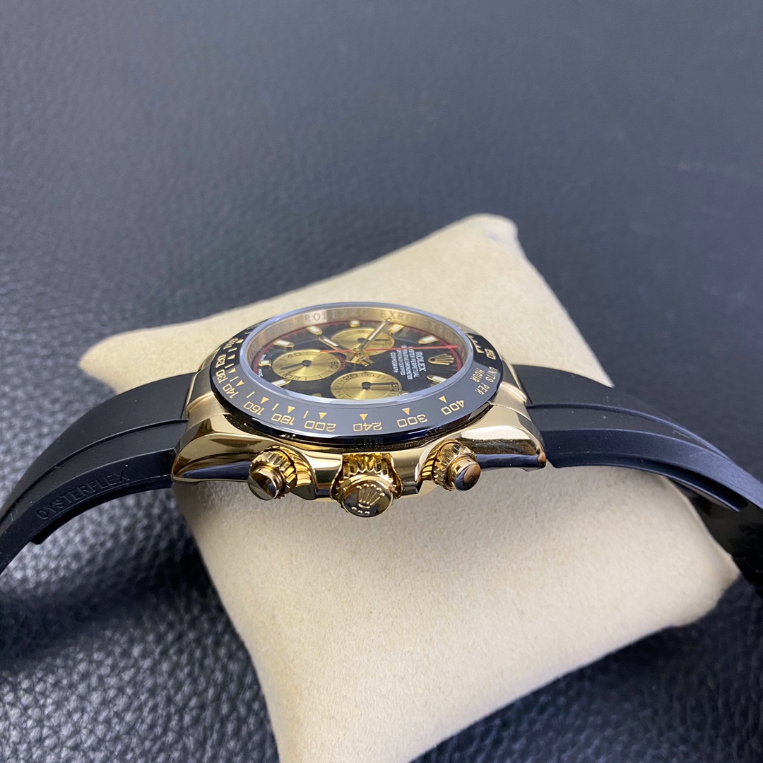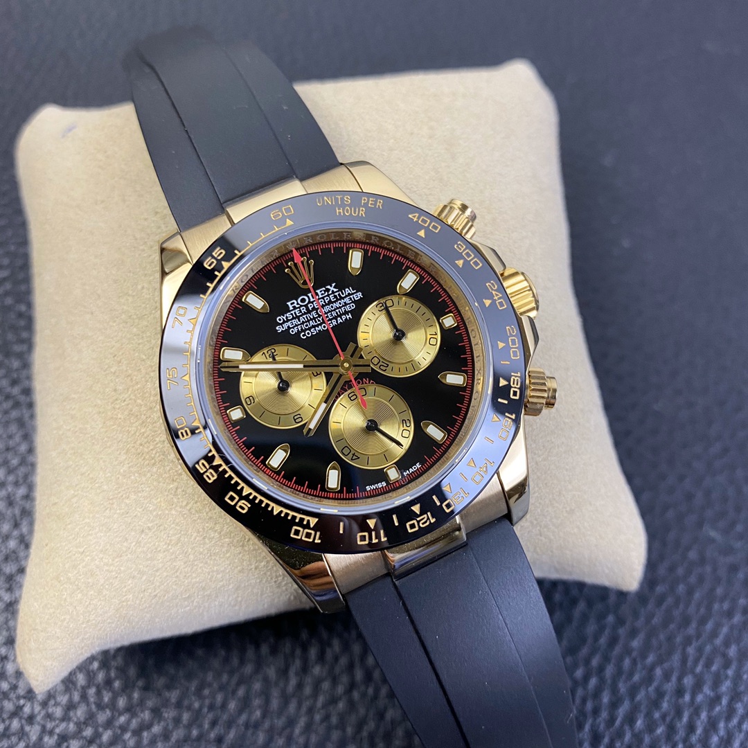 The Rolex Daytona watch exudes a sense of fashion and sportiness with its 40mm size and sporty style. Equipped with a 7750 automatic movement, it ensures precise and reliable time display. The watch features hour, minute, and second functions, and is equipped with luminescent hands and markers, ensuring clear readability even in low-light environments. With a water resistance of 50 meters, the watch is suitable for waterproof demands in daily life. The sapphire crystal glass provides excellent scratch resistance and clear time display. The carbon fiber case exhibits lightweight and durability, presenting a modern feel. Equipped with a fabric strap, the watch adds a sporty style and a sense of fashion. This Rolex Daytona watch, with its outstanding performance and fashionable design, is an ideal choice for individuals who value quality and a sporty style.