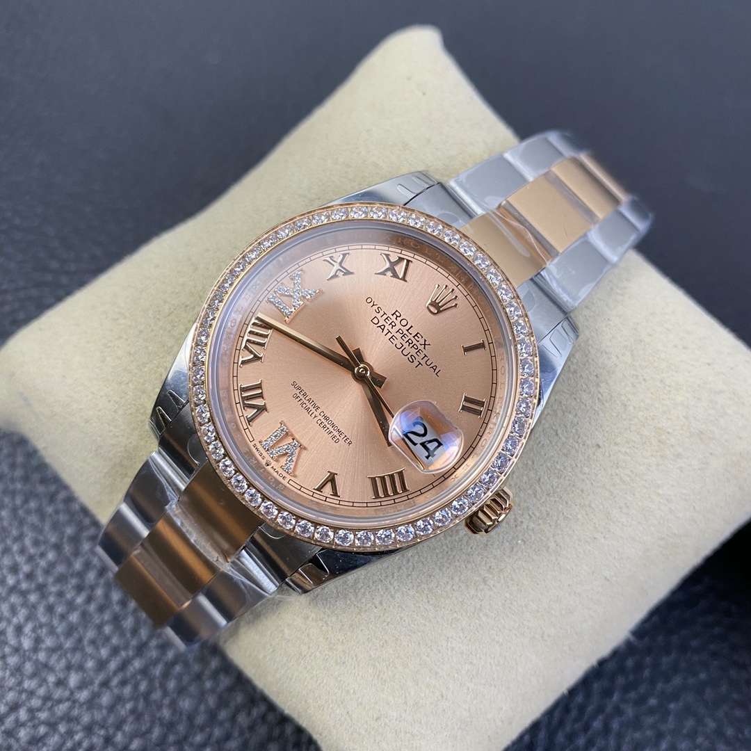 Rolex Datejust 36 Series, Top-of-the-Line Model with Gold Roman Numerals and Diamond Bezel
