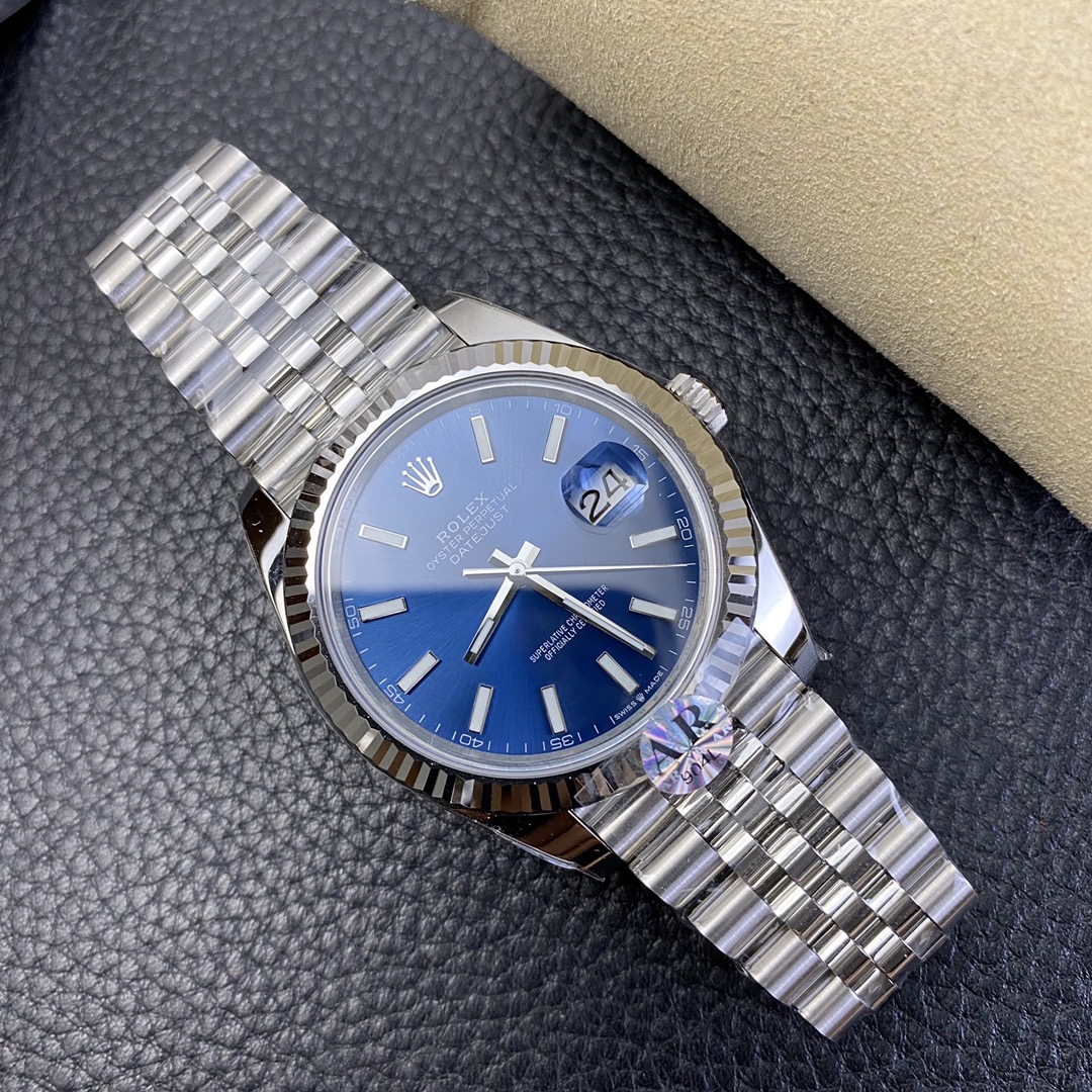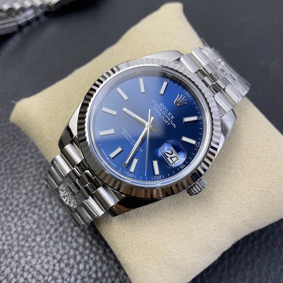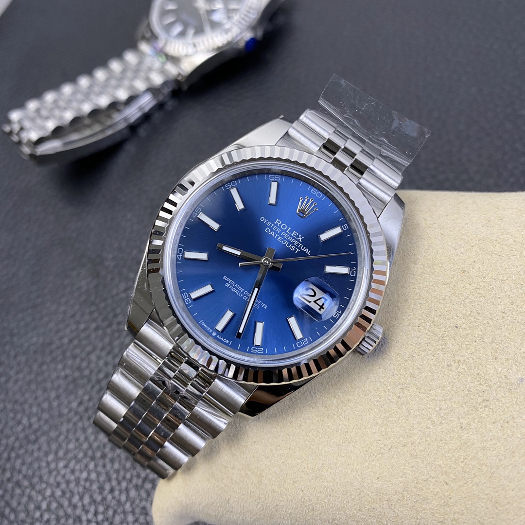 This Rolex Datejust series watch showcases a combination of classic 41mm size and minimalist design, exuding a sense of fashion and power. It is equipped with a 2836 automatic mechanical movement to ensure precise and reliable time display. The watch features hour, minute, second, and calendar functions to meet your daily timekeeping needs. With a 50-meter waterproof performance, it is suitable for everyday waterproof requirements. The scratch-resistant blue crystal glass protects the dial and provides a clear view. The folding clasp design makes it convenient to wear and adjust the length of the strap, enhancing wearing comfort. This Rolex Datejust series watch combines classic aesthetics with practicality, making it an ideal choice for fashion enthusiasts.