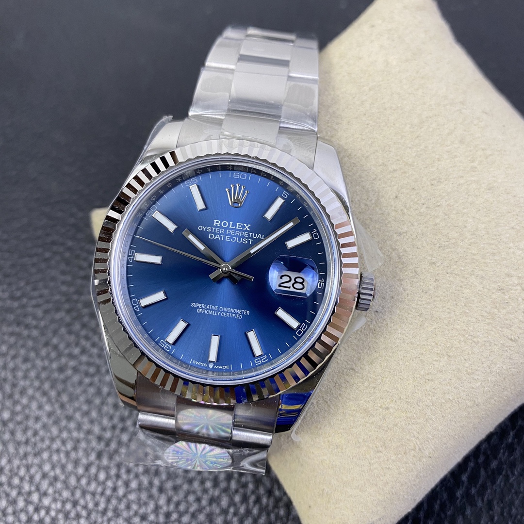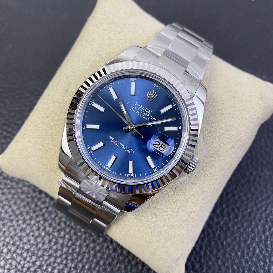 This Rolex Datejust series watch showcases a combination of classic 41mm size and minimalist design, exuding a sense of fashion and power. It is equipped with a 2836 automatic mechanical movement to ensure precise and reliable time display. The watch features hour, minute, second, and calendar functions to meet your daily timekeeping needs. With a 50-meter waterproof performance, it is suitable for everyday waterproof requirements. The scratch-resistant blue crystal glass protects the dial and provides a clear view. The folding clasp design makes it convenient to wear and adjust the length of the strap, enhancing wearing comfort. This Rolex Datejust series watch combines classic aesthetics with practicality, making it an ideal choice for fashion enthusiasts.