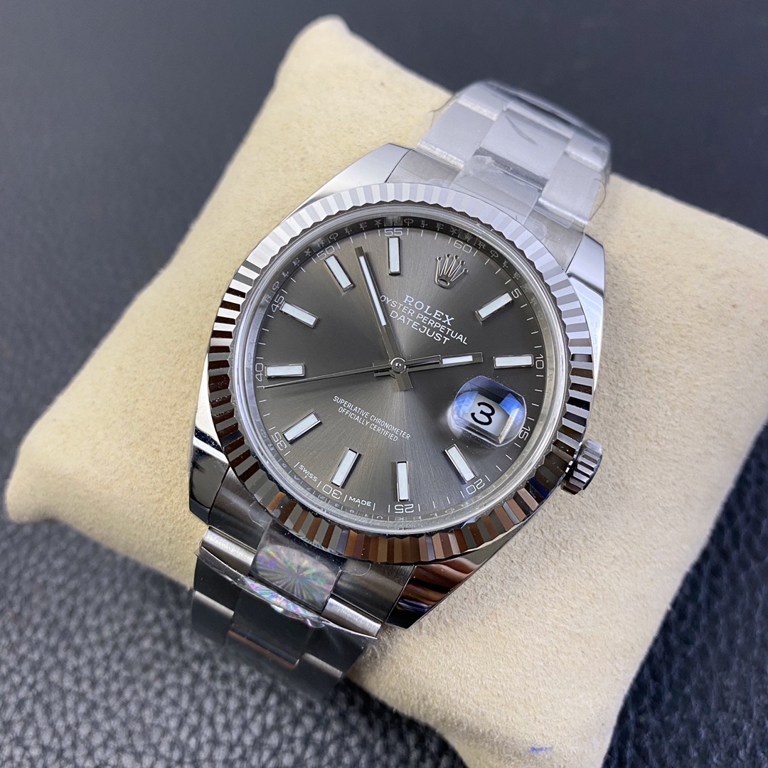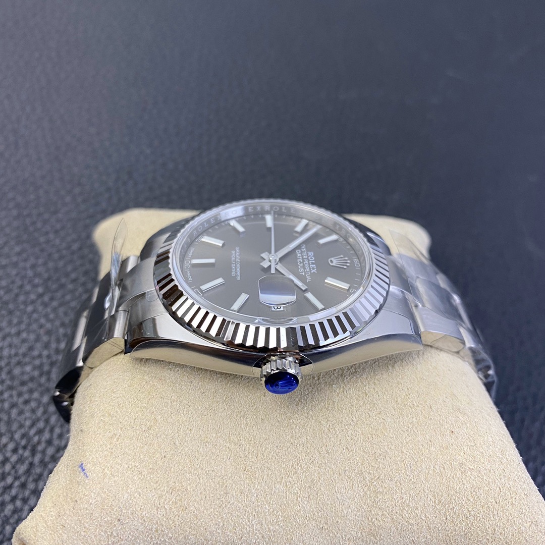This Rolex Datejust series watch showcases a combination of classic 41mm size and minimalist design, exuding a sense of fashion and power. It is equipped with a 2836 automatic mechanical movement to ensure precise and reliable time display. The watch features hour, minute, second, and calendar functions to meet your daily timekeeping needs. With a 50-meter waterproof performance, it is suitable for everyday waterproof requirements. The scratch-resistant blue crystal glass protects the dial and provides a clear view. The folding clasp design makes it convenient to wear and adjust the length of the strap, enhancing wearing comfort. This Rolex Datejust series watch combines classic aesthetics with practicality, making it an ideal choice for fashion enthusiasts.