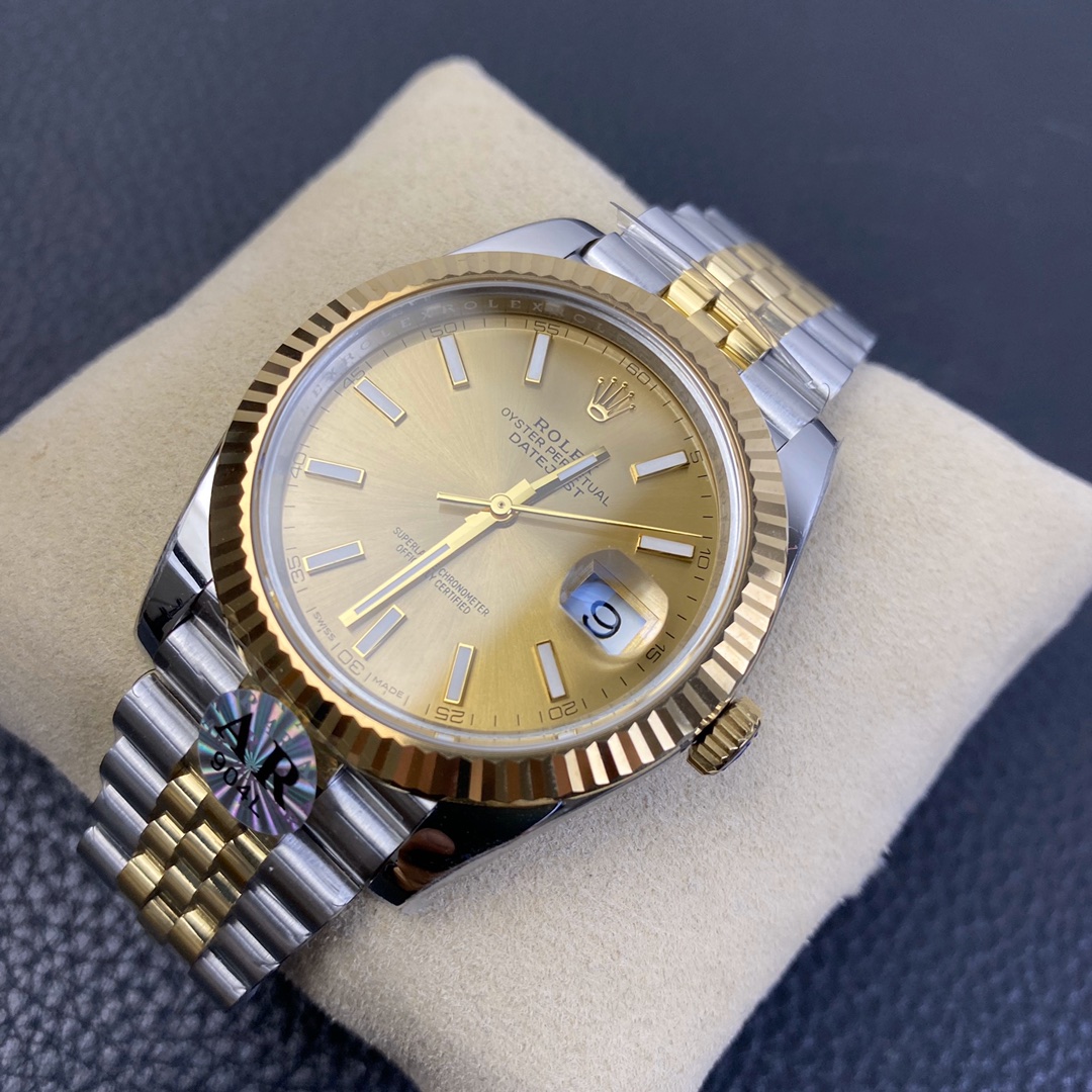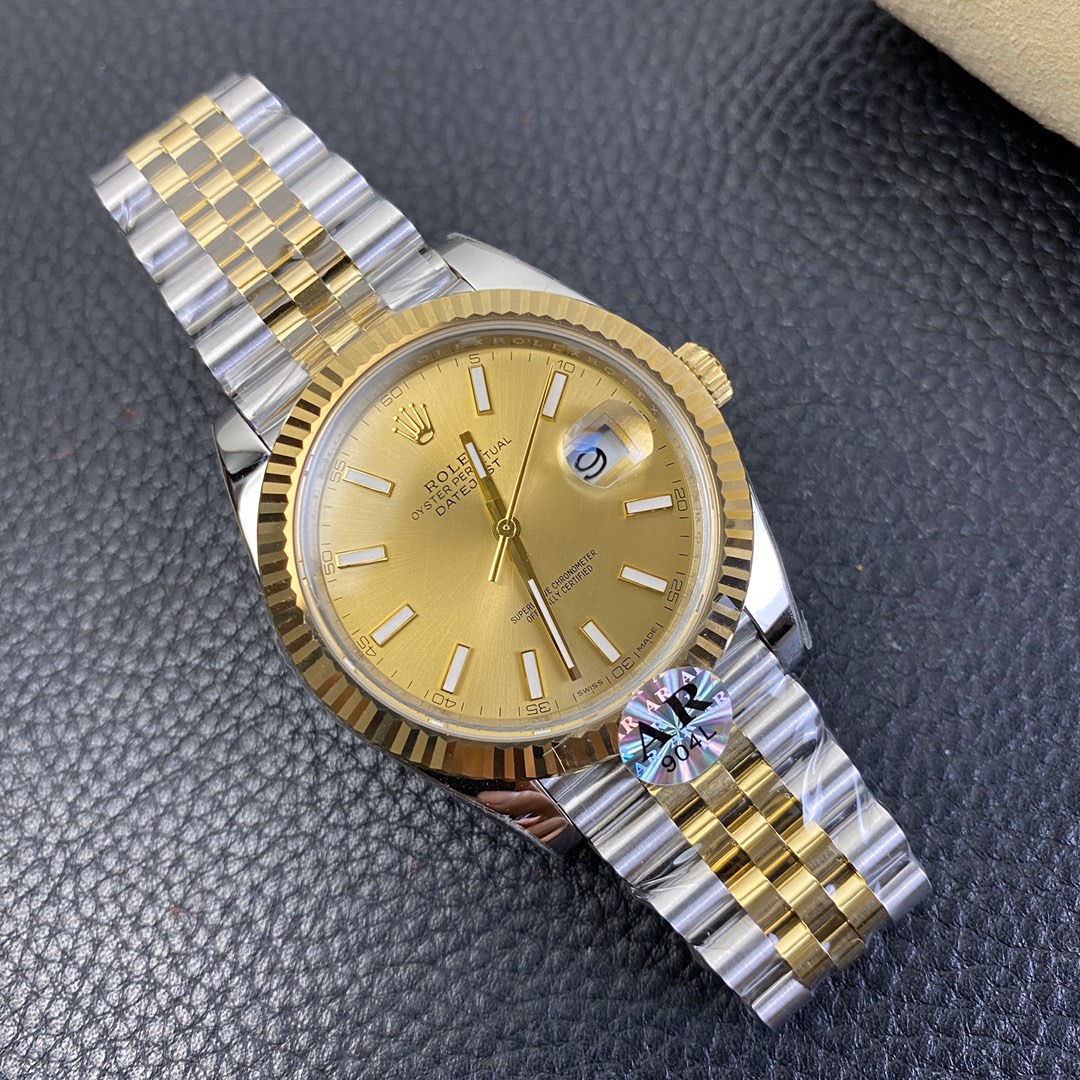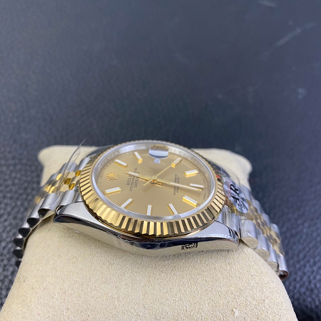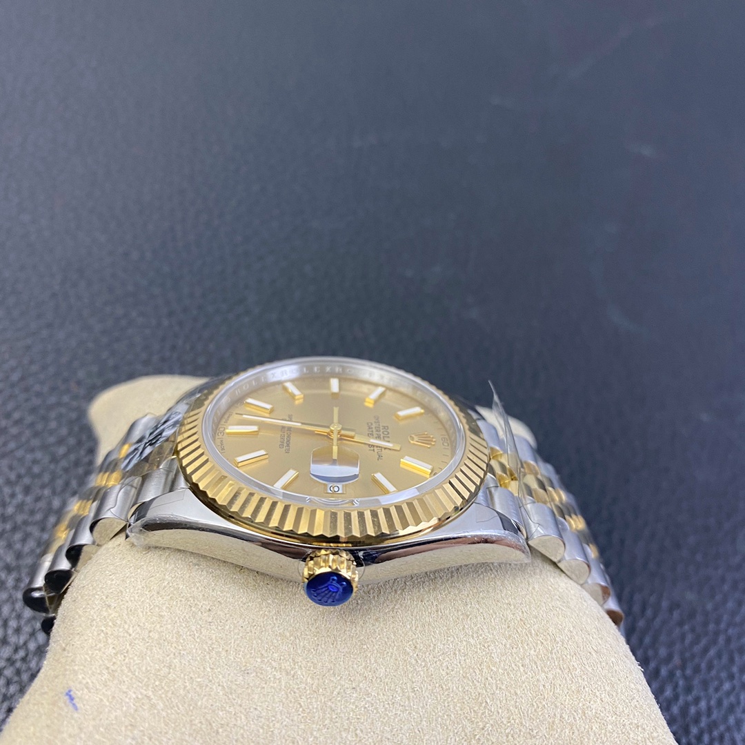 This Rolex Datejust series watch showcases a combination of classic 41mm size and minimalist design, exuding a sense of fashion and power. It is equipped with a 2836 automatic mechanical movement to ensure precise and reliable time display. The watch features hour, minute, second, and calendar functions to meet your daily timekeeping needs. With a 50-meter waterproof performance, it is suitable for everyday waterproof requirements. The scratch-resistant blue crystal glass protects the dial and provides a clear view. The folding clasp design makes it convenient to wear and adjust the length of the strap, enhancing wearing comfort. This Rolex Datejust series watch combines classic aesthetics with practicality, making it an ideal choice for fashion enthusiasts.
