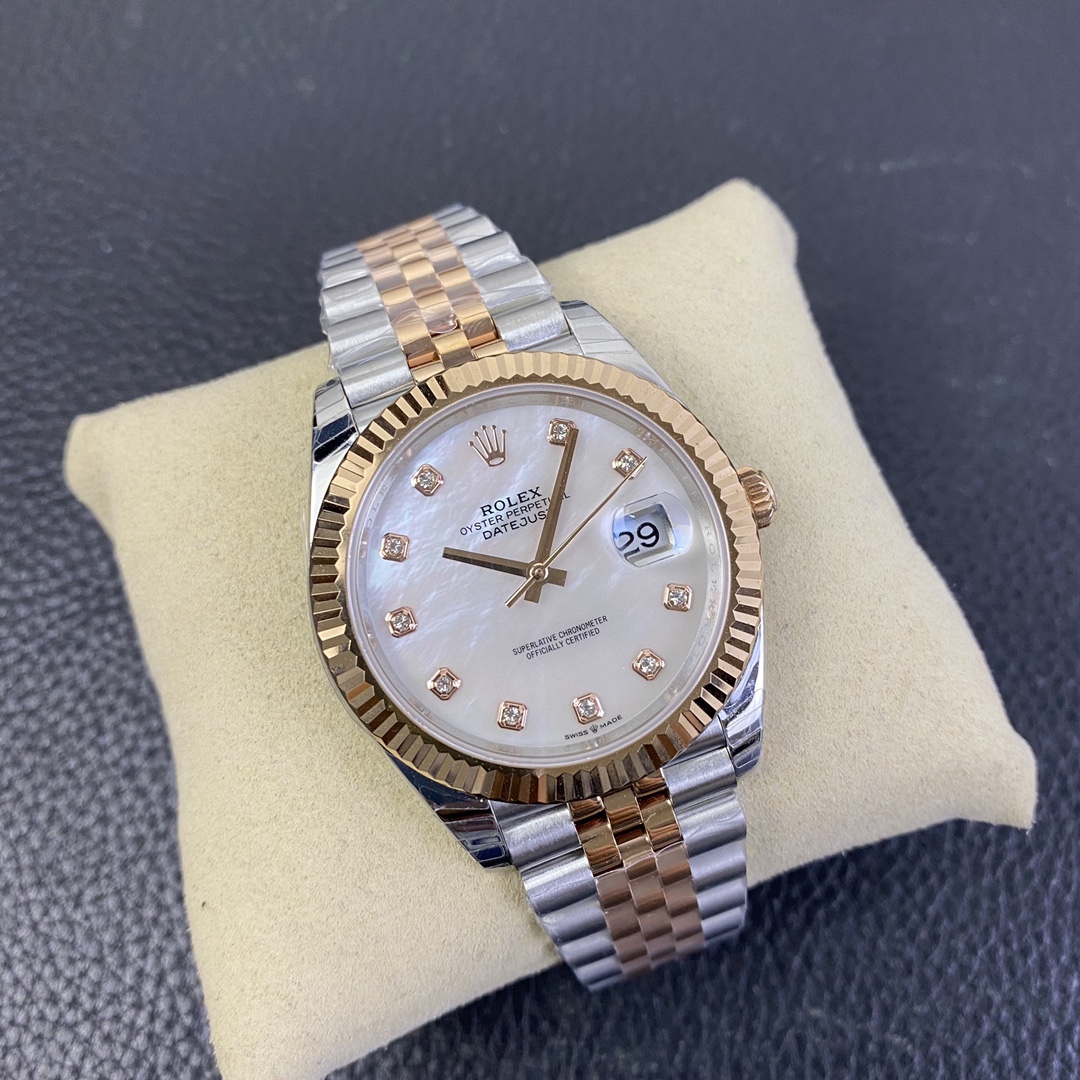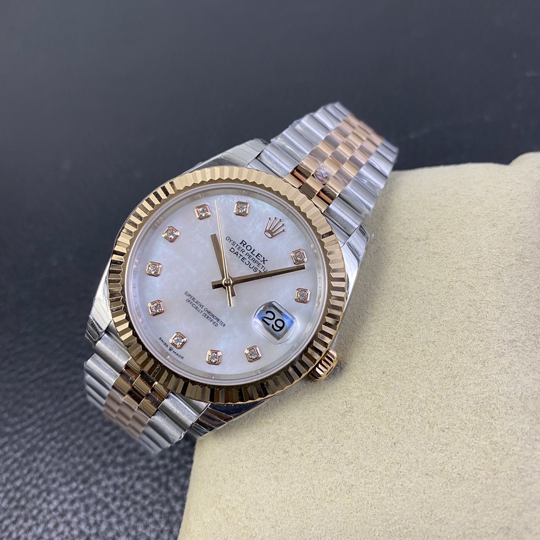 This Rolex Datejust series watch showcases a combination of classic 41mm size and minimalist design, exuding a sense of fashion and power. It is equipped with a 2836 automatic mechanical movement to ensure precise and reliable time display. The watch features hour, minute, second, and calendar functions to meet your daily timekeeping needs. With a 50-meter waterproof performance, it is suitable for everyday waterproof requirements. The scratch-resistant blue crystal glass protects the dial and provides a clear view. The folding clasp design makes it convenient to wear and adjust the length of the strap, enhancing wearing comfort. This Rolex Datejust series watch combines classic aesthetics with practicality, making it an ideal choice for fashion enthusiasts.