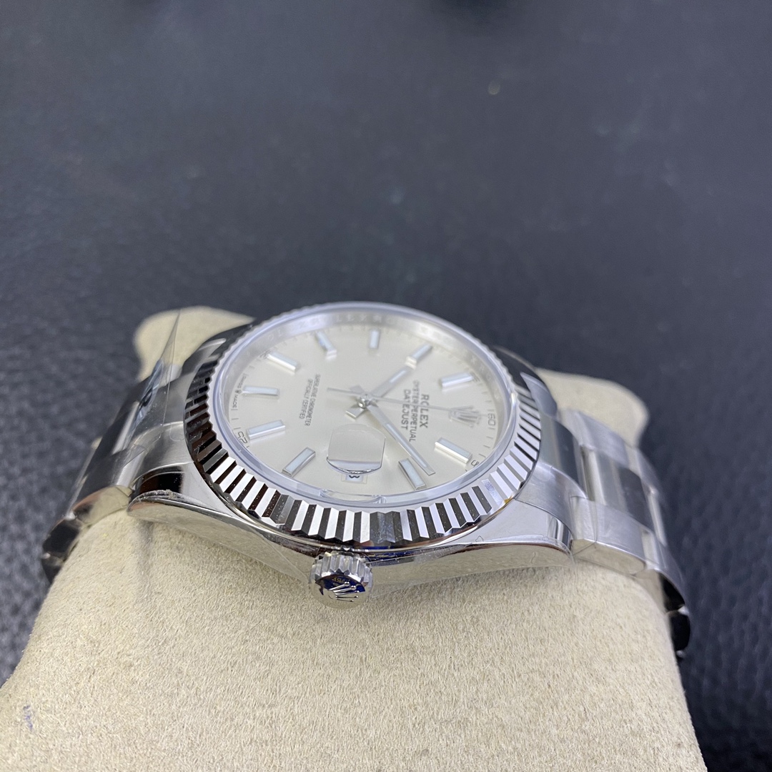 This Rolex Datejust series watch showcases a combination of classic 41mm size and minimalist design, exuding a sense of fashion and power. It is equipped with a 2836 automatic mechanical movement to ensure precise and reliable time display. The watch features hour, minute, second, and calendar functions to meet your daily timekeeping needs. With a 50-meter waterproof performance, it is suitable for everyday waterproof requirements. The scratch-resistant blue crystal glass protects the dial and provides a clear view. The folding clasp design makes it convenient to wear and adjust the length of the strap, enhancing wearing comfort. This Rolex Datejust series watch combines classic aesthetics with practicality, making it an ideal choice for fashion enthusiasts.