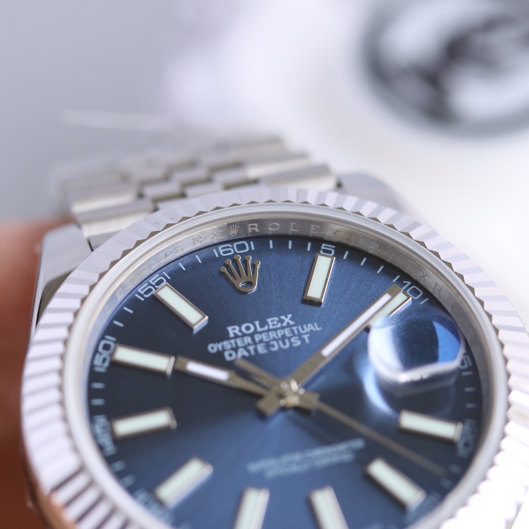 This Rolex Datejust series watch showcases a combination of classic 41mm size and minimalist design, exuding a sense of fashion and power. It is equipped with a 2836 automatic mechanical movement to ensure precise and reliable time display. The watch features hour, minute, second, and calendar functions to meet your daily timekeeping needs. With a 50-meter waterproof performance, it is suitable for everyday waterproof requirements. The scratch-resistant blue crystal glass protects the dial and provides a clear view. The folding clasp design makes it convenient to wear and adjust the length of the strap, enhancing wearing comfort. This Rolex Datejust series watch combines classic aesthetics with practicality, making it an ideal choice for fashion enthusiasts.
