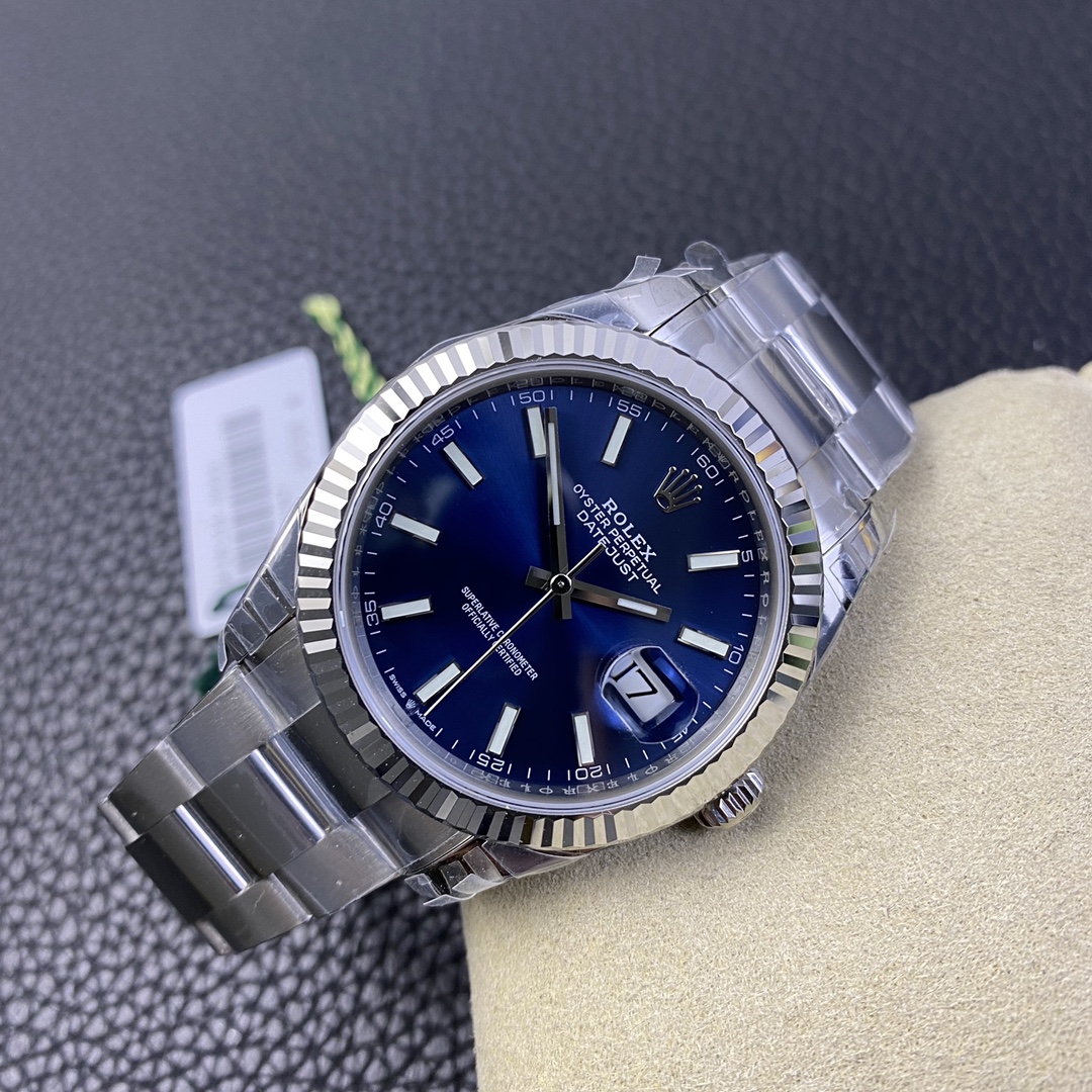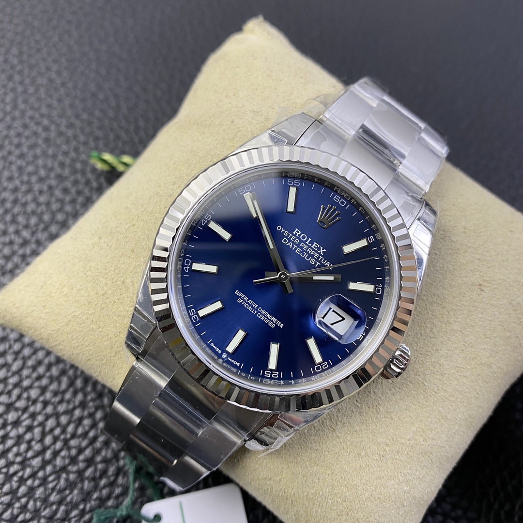 This Rolex Datejust series watch showcases a combination of classic 41mm size and minimalist design, exuding a sense of fashion and power. It is equipped with a 2836 automatic mechanical movement to ensure precise and reliable time display. The watch features hour, minute, second, and calendar functions to meet your daily timekeeping needs. With a 50-meter waterproof performance, it is suitable for everyday waterproof requirements. The scratch-resistant blue crystal glass protects the dial and provides a clear view. The folding clasp design makes it convenient to wear and adjust the length of the strap, enhancing wearing comfort. This Rolex Datejust series watch combines classic aesthetics with practicality, making it an ideal choice for fashion enthusiasts.