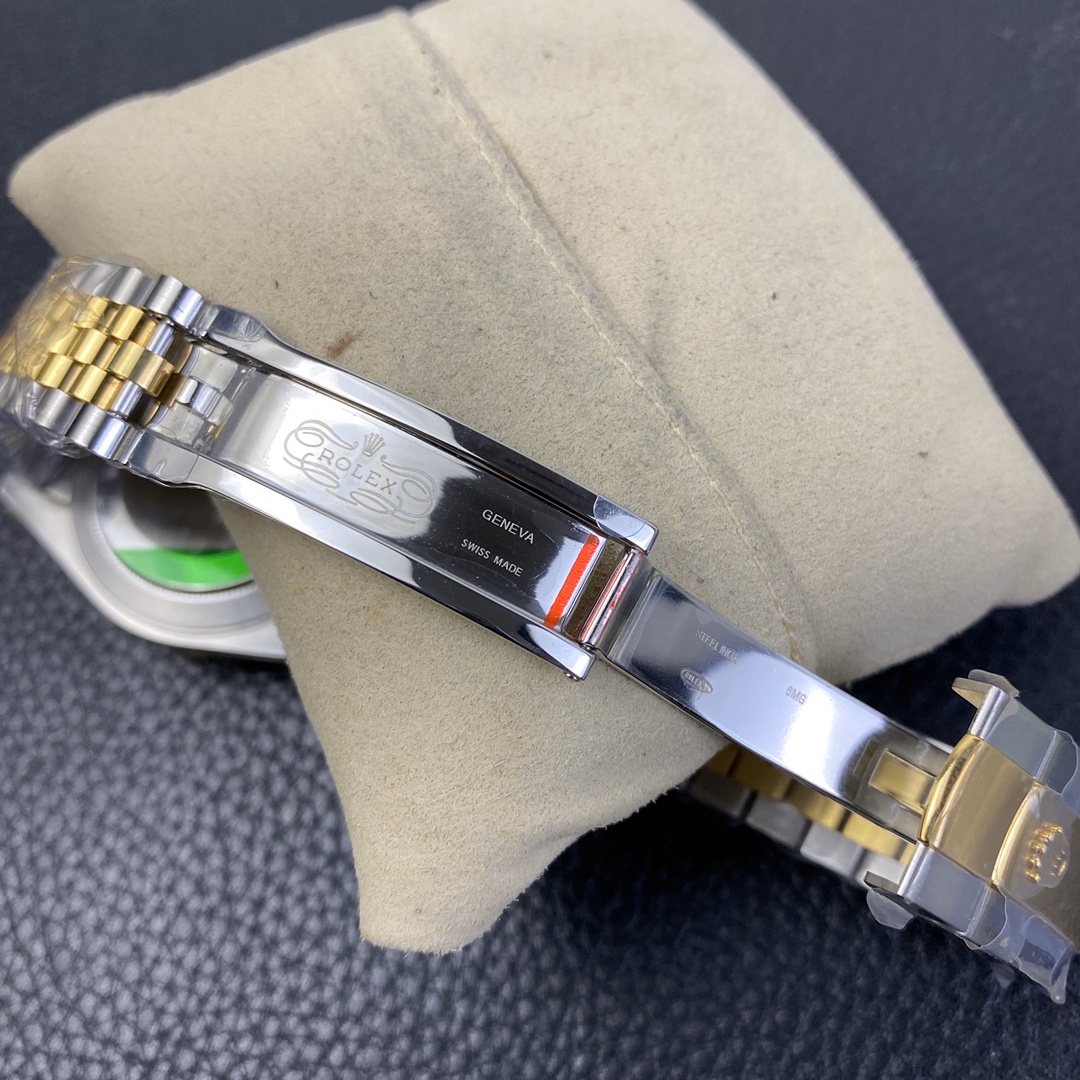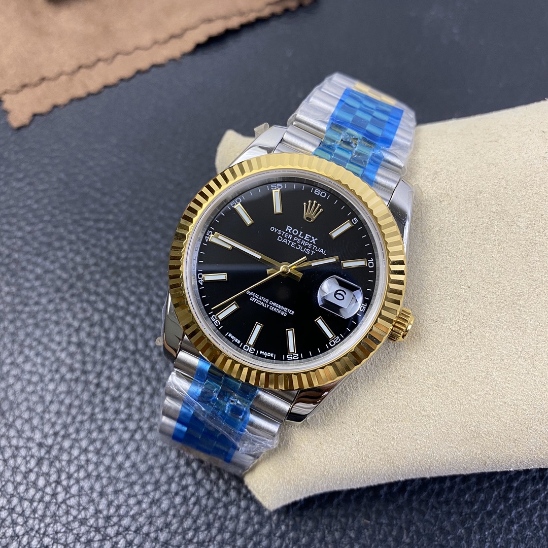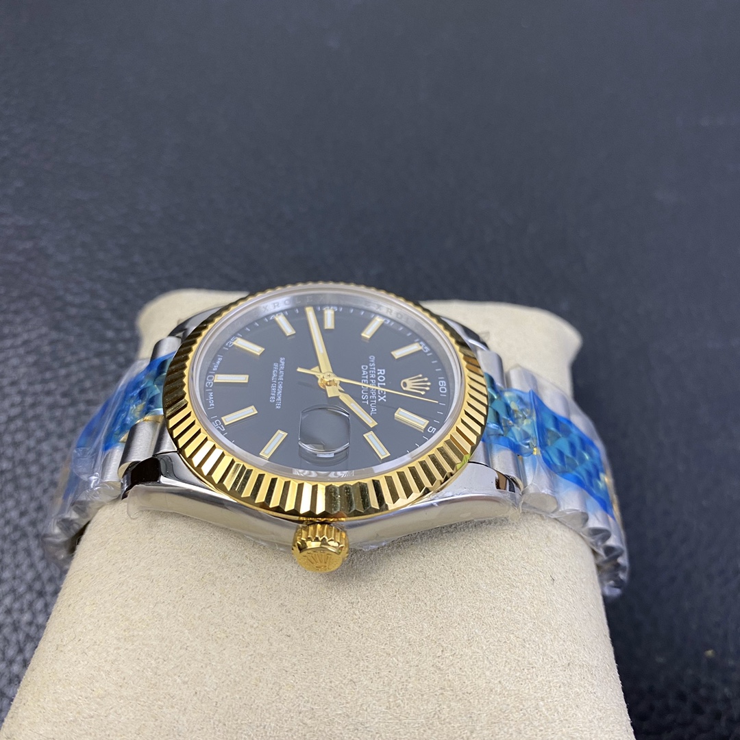 This Rolex Datejust series watch showcases a combination of classic 41mm size and minimalist design, exuding a sense of fashion and power. It is equipped with a 2836 automatic mechanical movement to ensure precise and reliable time display. The watch features hour, minute, second, and calendar functions to meet your daily timekeeping needs. With a 50-meter waterproof performance, it is suitable for everyday waterproof requirements. The scratch-resistant blue crystal glass protects the dial and provides a clear view. The folding clasp design makes it convenient to wear and adjust the length of the strap, enhancing wearing comfort. This Rolex Datejust series watch combines classic aesthetics with practicality, making it an ideal choice for fashion enthusiasts.