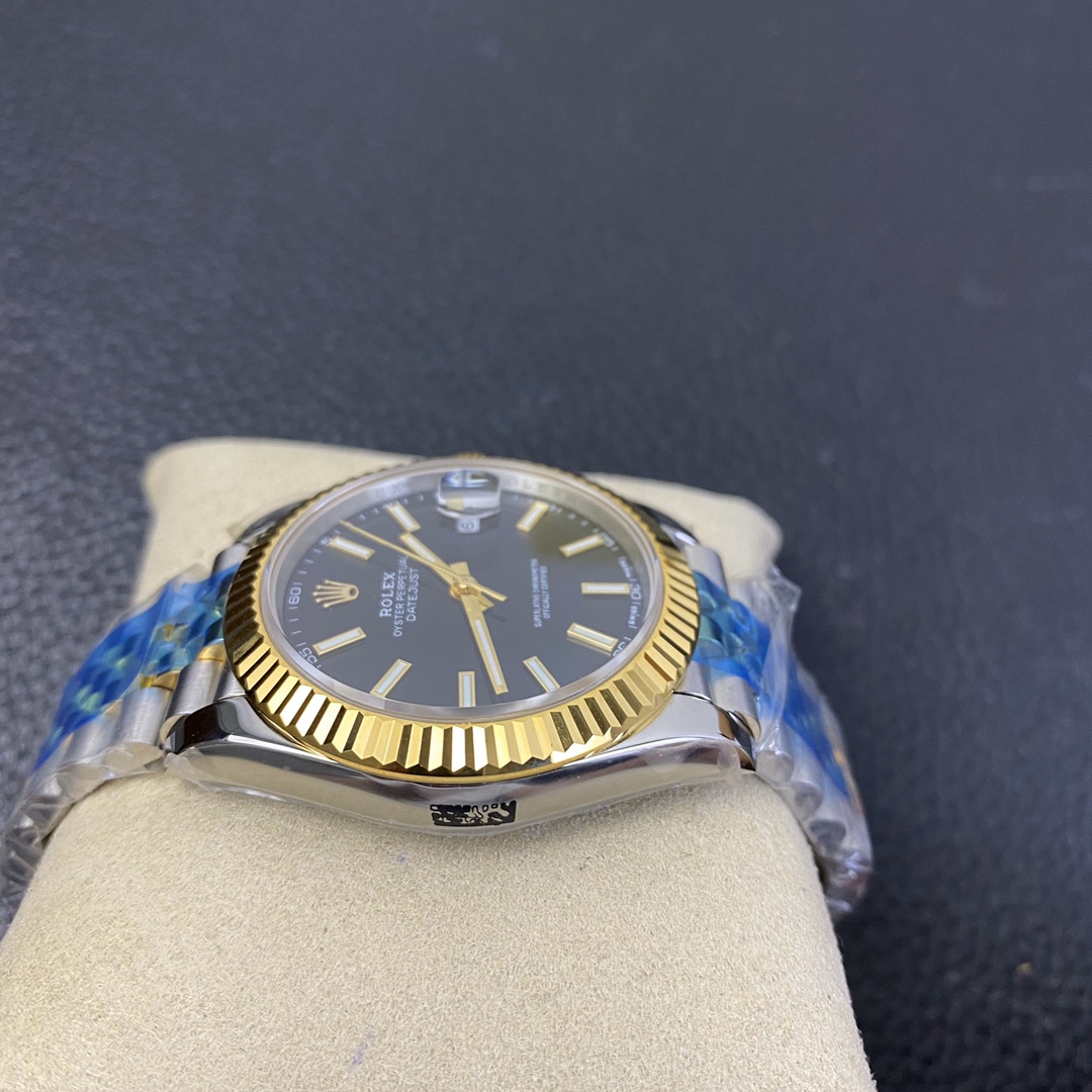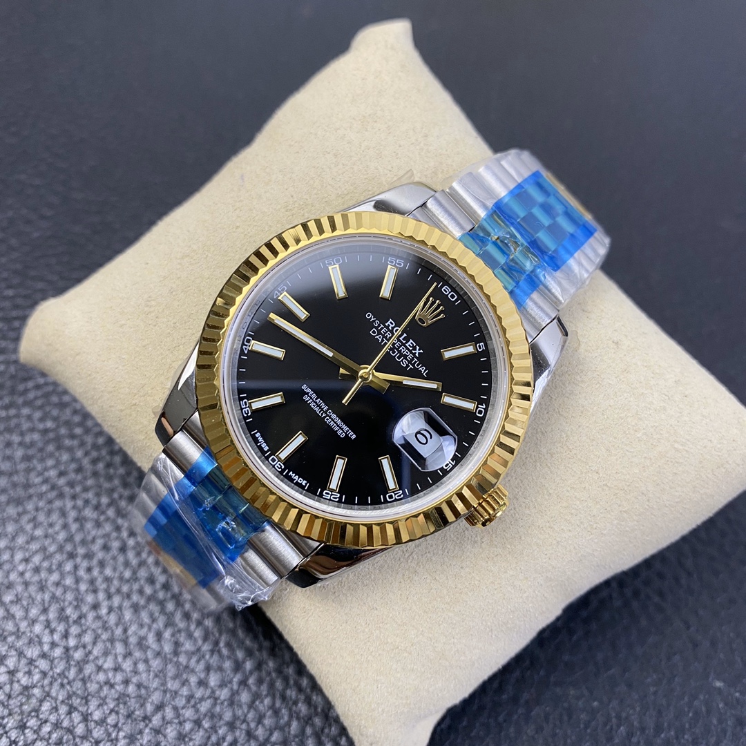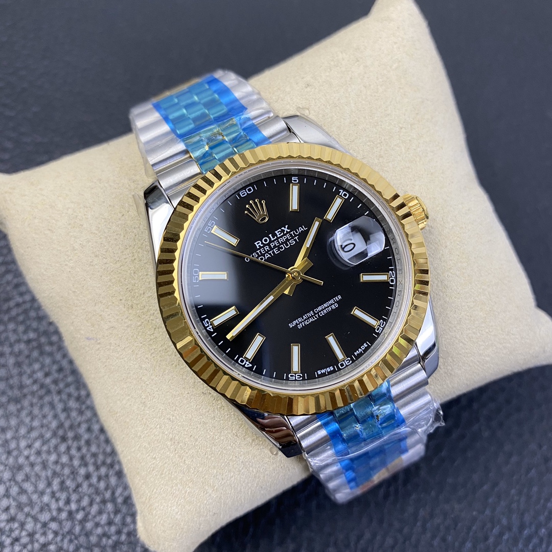 This Rolex Datejust series watch showcases a combination of classic 41mm size and minimalist design, exuding a sense of fashion and power. It is equipped with a 2836 automatic mechanical movement to ensure precise and reliable time display. The watch features hour, minute, second, and calendar functions to meet your daily timekeeping needs. With a 50-meter waterproof performance, it is suitable for everyday waterproof requirements. The scratch-resistant blue crystal glass protects the dial and provides a clear view. The folding clasp design makes it convenient to wear and adjust the length of the strap, enhancing wearing comfort. This Rolex Datejust series watch combines classic aesthetics with practicality, making it an ideal choice for fashion enthusiasts.