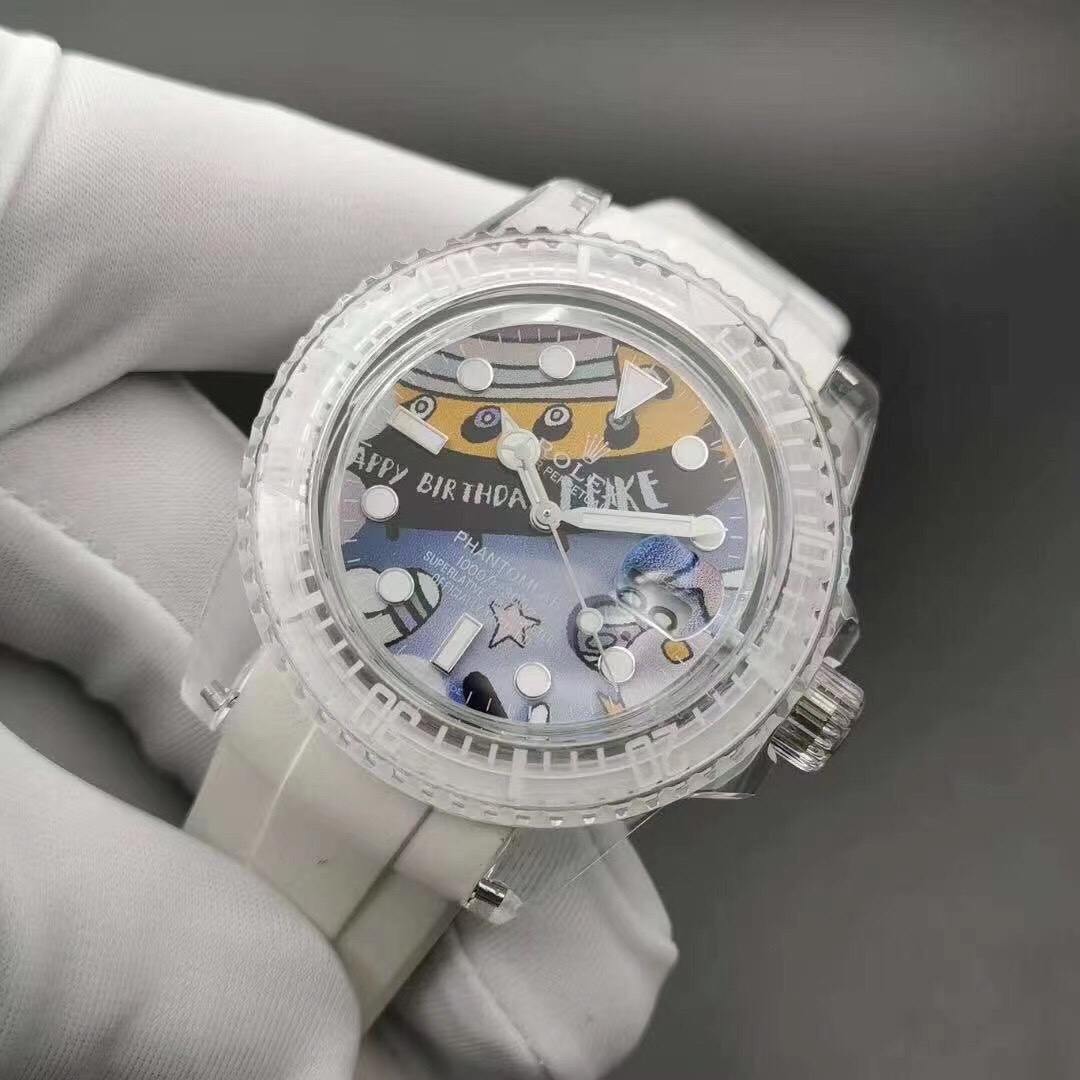 The Rolex Glass Crystal series watch, with its 40mm size and exquisite design, showcases a sense of fashion and power. Equipped with the Swiss ETA2824 automatic movement, ensuring precise and reliable time display. The watch features hour, minute, and second functions, offering simplicity and practicality. With a water resistance of 100 meters, the watch is suitable for daily waterproof needs. The sapphire crystal glass protects the dial and provides a clear view. The folding clasp design facilitates wearing and adjustment of the bracelet length, enhancing comfort. The 316L stainless steel case exhibits durability and high quality. This Rolex Glass Crystal series watch combines sophistication and practicality, making it an ideal choice for fashion enthusiasts.