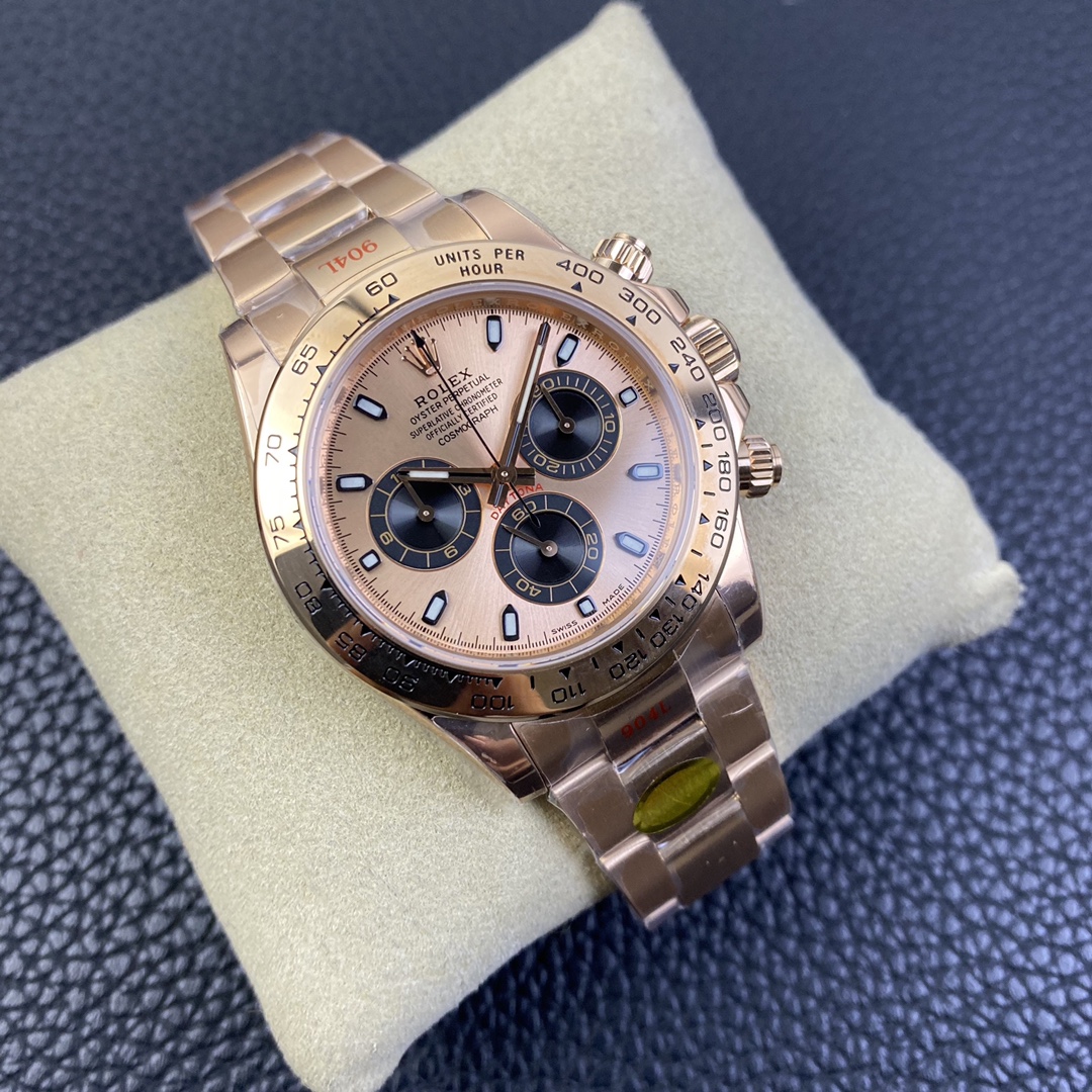This Rolex Daytona series wristwatch showcases a sense of stability and fashion with its 40mm x 12.6mm size and classic design. Equipped with a Swiss ETA4130 automatic mechanical movement, it ensures accurate and reliable time display. The watch features hour, minute, and second functions, as well as luminescent hands and markers for clear visibility even in the dark. The sapphire crystal glass protects the dial and provides a clear view. The folding clasp design makes it convenient to wear and adjust the bracelet length, adding to the comfort of wearing. The 904L stainless steel case showcases durability and high-quality craftsmanship. Equipped with a stainless steel bracelet, it presents a harmonious aesthetic. This Rolex Daytona series wristwatch, with its sporty style and exceptional performance, is an ideal choice for fashion enthusiasts who aspire to exceptional quality and unique style.