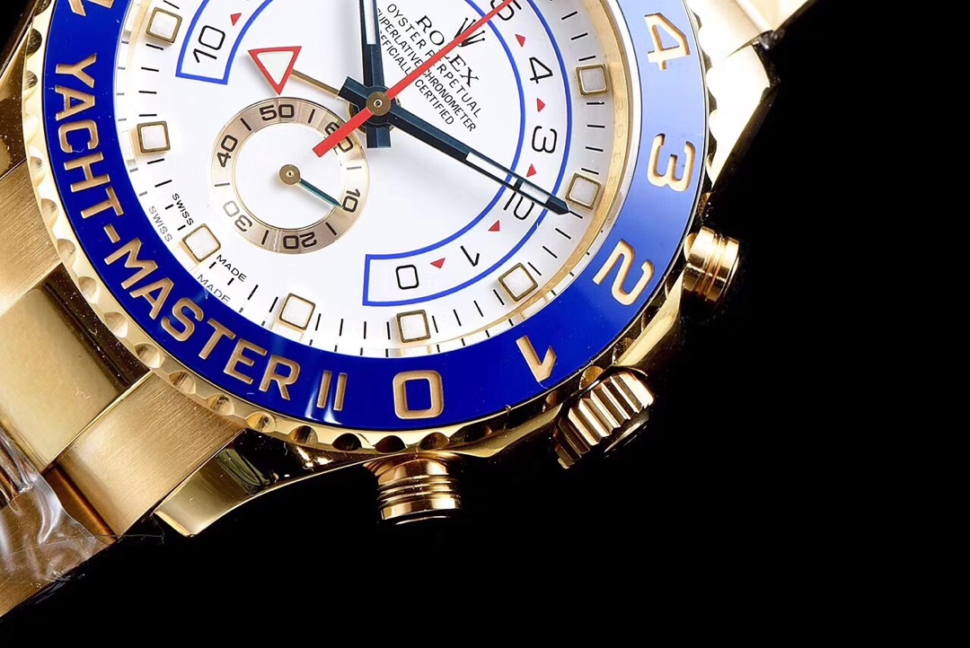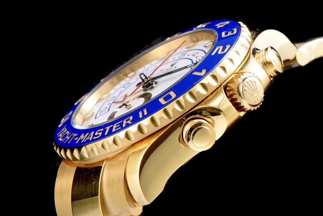 The Rolex Yacht-Master II watch combines a 44mm size with a luxurious sporty design, showcasing a bold and masculine character. It is equipped with a 7750 automatic movement, ensuring precise and reliable time display. The watch features hours, minutes, and seconds functions, allowing you to easily keep track of time. With a water resistance of 50 meters, the watch is suitable for daily waterproof needs. The sapphire crystal glass provides excellent scratch resistance and clear time display. It is designed with a folding clasp, adding comfort during wear. The stainless steel case and bracelet exhibit durability and high quality, highlighting Rolex’s craftsmanship and quality. This Rolex Yacht-Master II watch, combining luxury and sportiness, is an ideal choice for those who pursue fashion and quality.