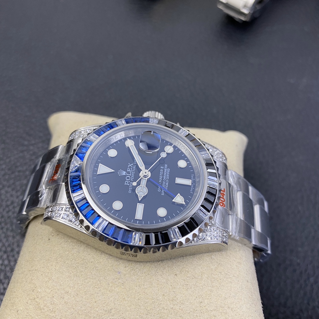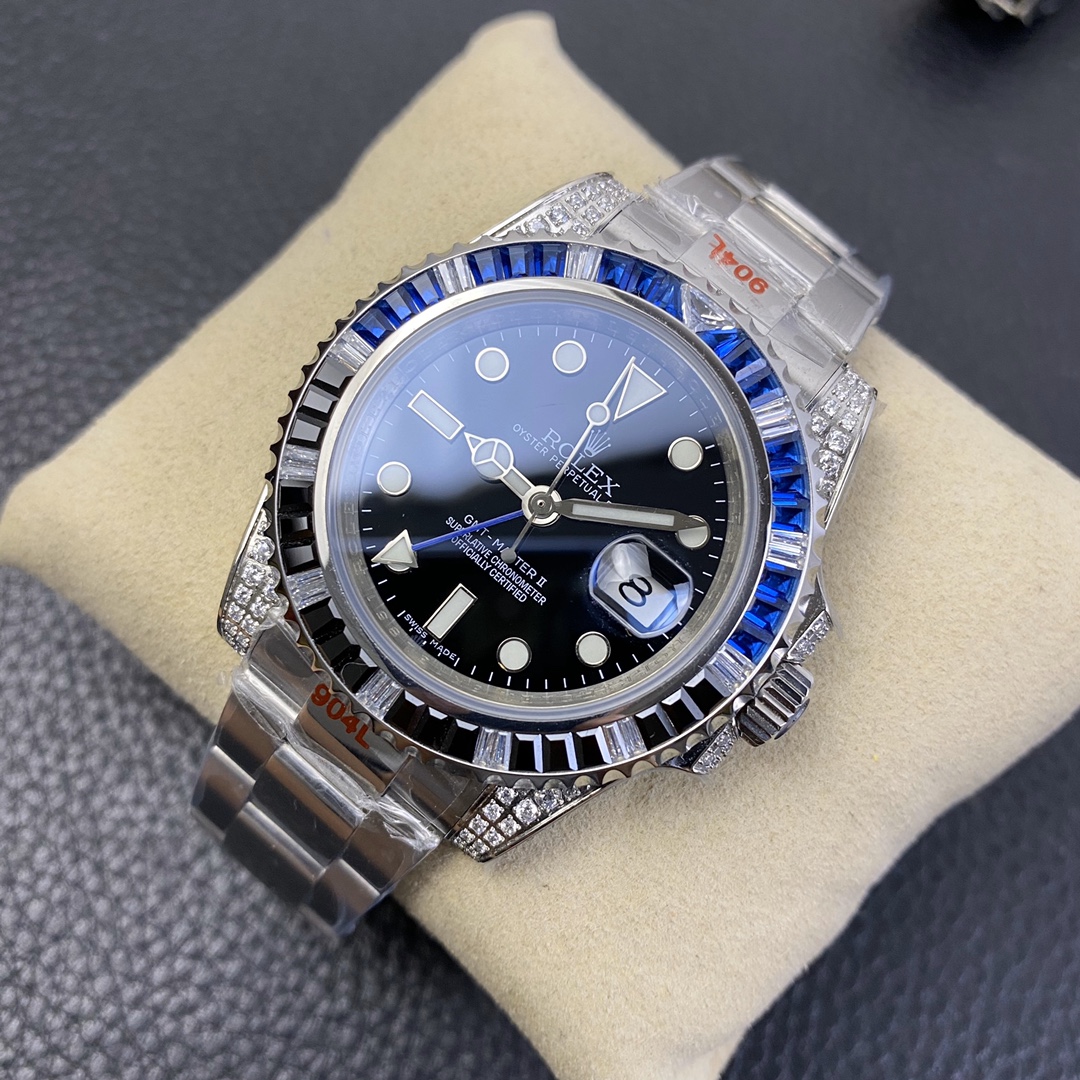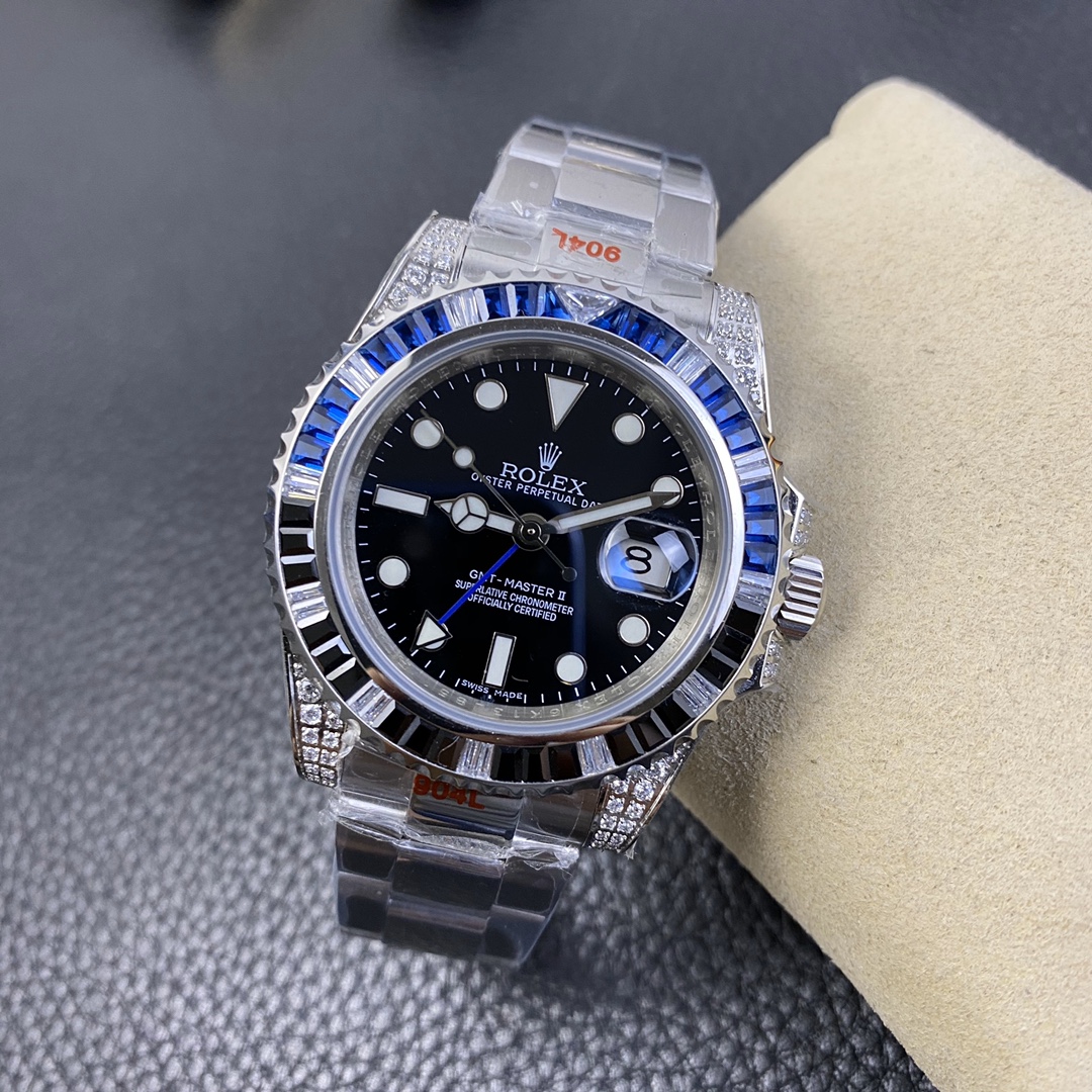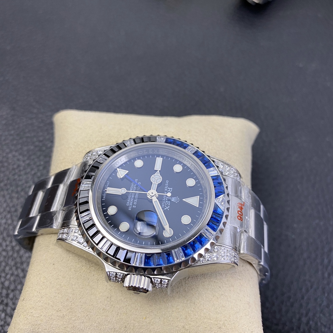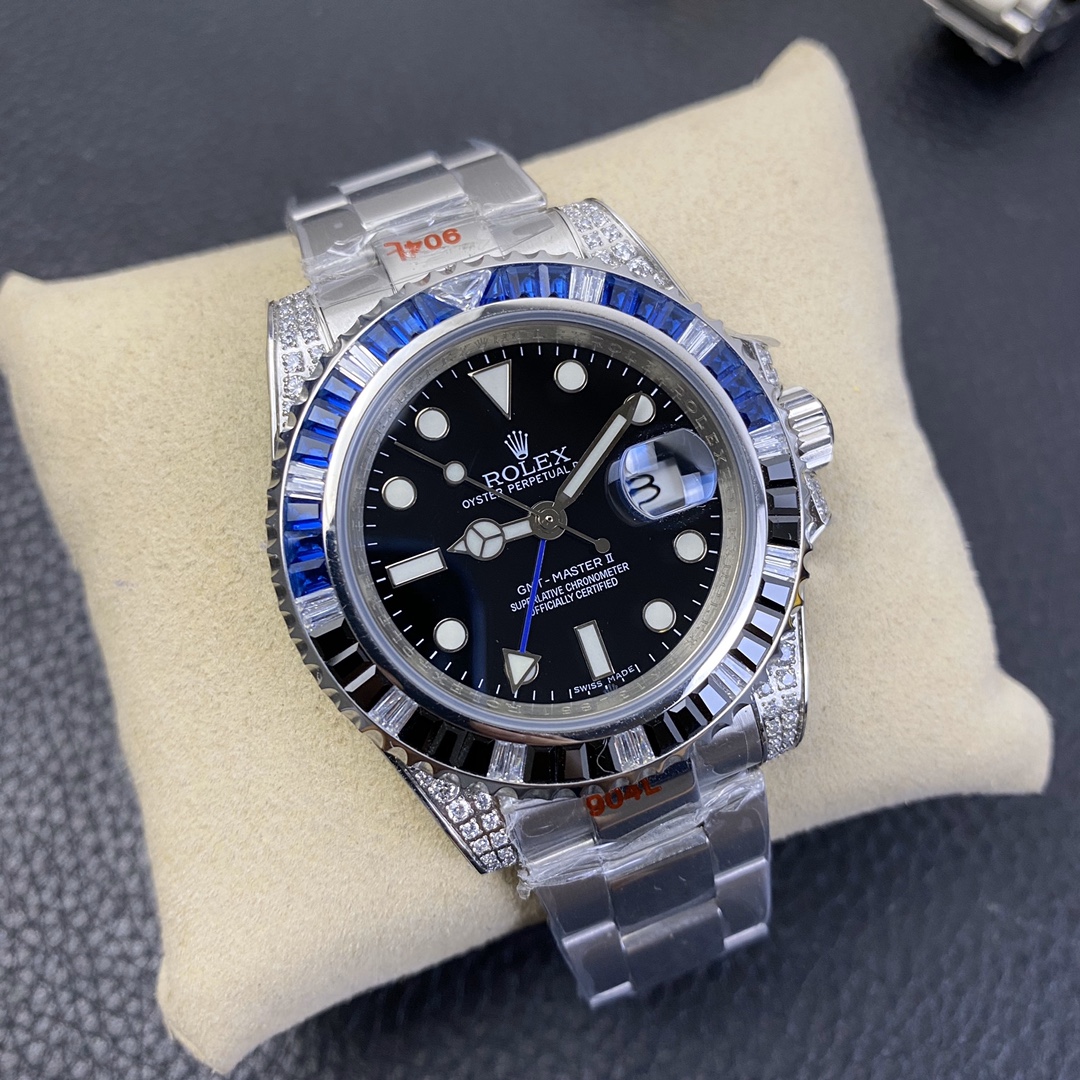 The Rolex GMT-Master series watch is highly acclaimed for its multi-functionality and time zone display feature. With a size of 40mm x 13mm, it showcases a classic and moderate men’s watch size, while the 2836 automatic mechanical movement ensures accurate time display. The superluminous function guarantees clear time reading in any lighting conditions. With a water resistance of over 100 meters, this watch is suitable for deeper underwater activities. The scratch-resistant blue sapphire crystal glass protects the dial and provides a clear view. The folding clasp and Oyster-style three-piece link bracelet offer a comfortable wearing experience and a classic look. This Rolex GMT-Master series watch is an ideal choice for men who pursue multi-functionality and high performance, showcasing the brand’s excellent craftsmanship and exquisite technology.
