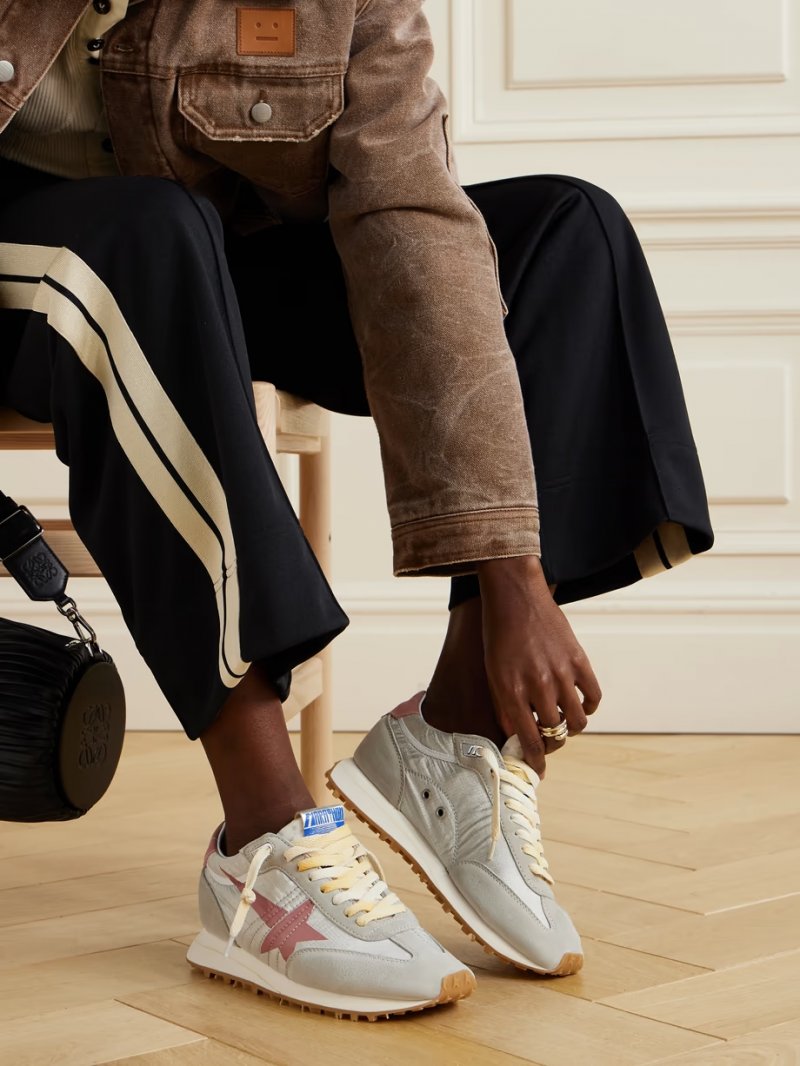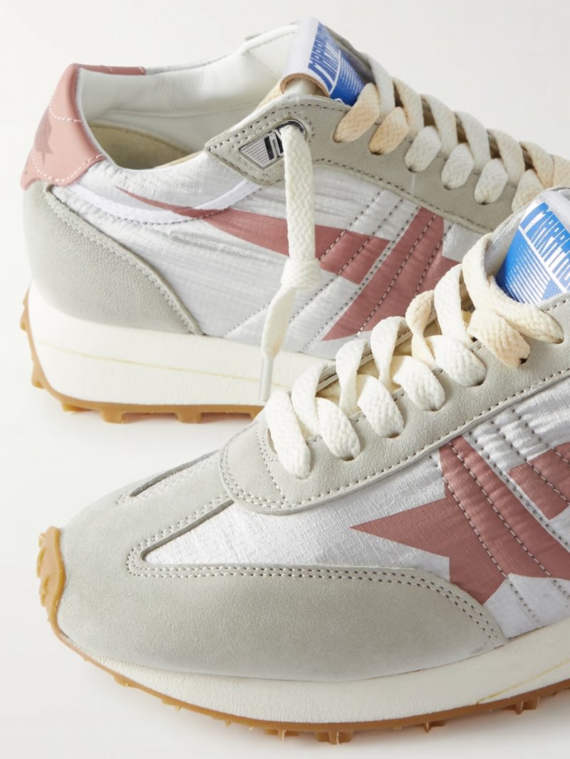 - Grey suede (Calf), silver and pink ripstop, pink leather (Goat)