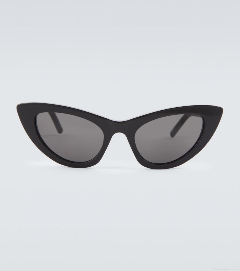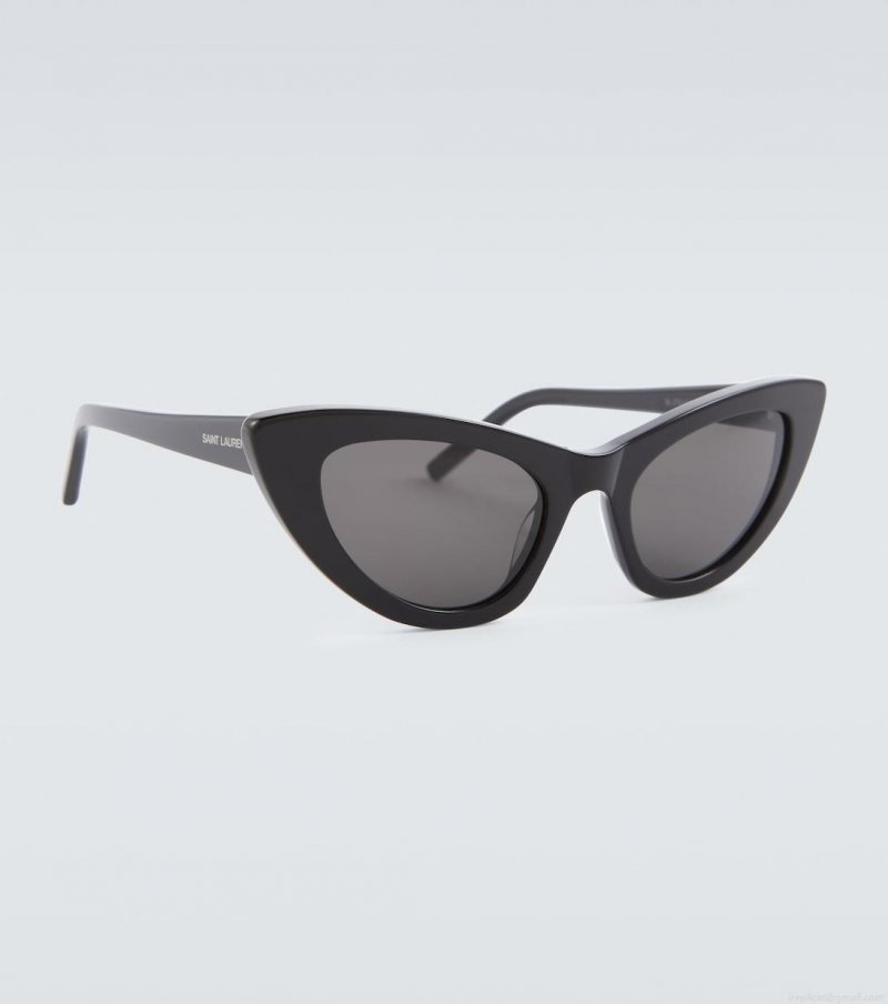 These cat-eye sunglasses from Saint Laurent complete every look on a stylish note. The pointed black frames have grey-tinted lenses are complete with logo branding on the temples.
