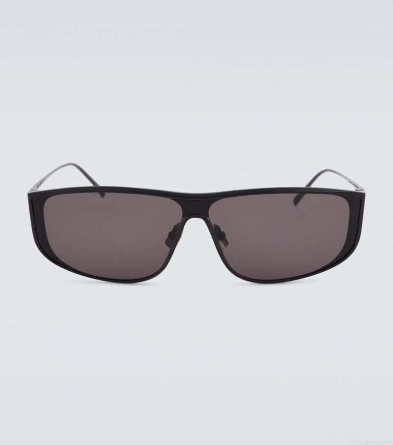 The Luna sunglasses from Saint Laurent are made in a sleek rectangular silhouette with contrasting borders. They feature metal nose pads and are engraved with logo lettering at the temples.