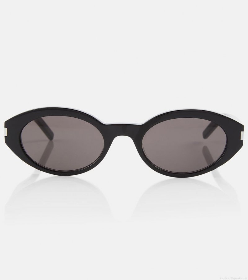 Create a polished look with these elegant oval sunglasses from Saint Laurent. They're made from black acetate and they feature embossed logo branding at the arms.