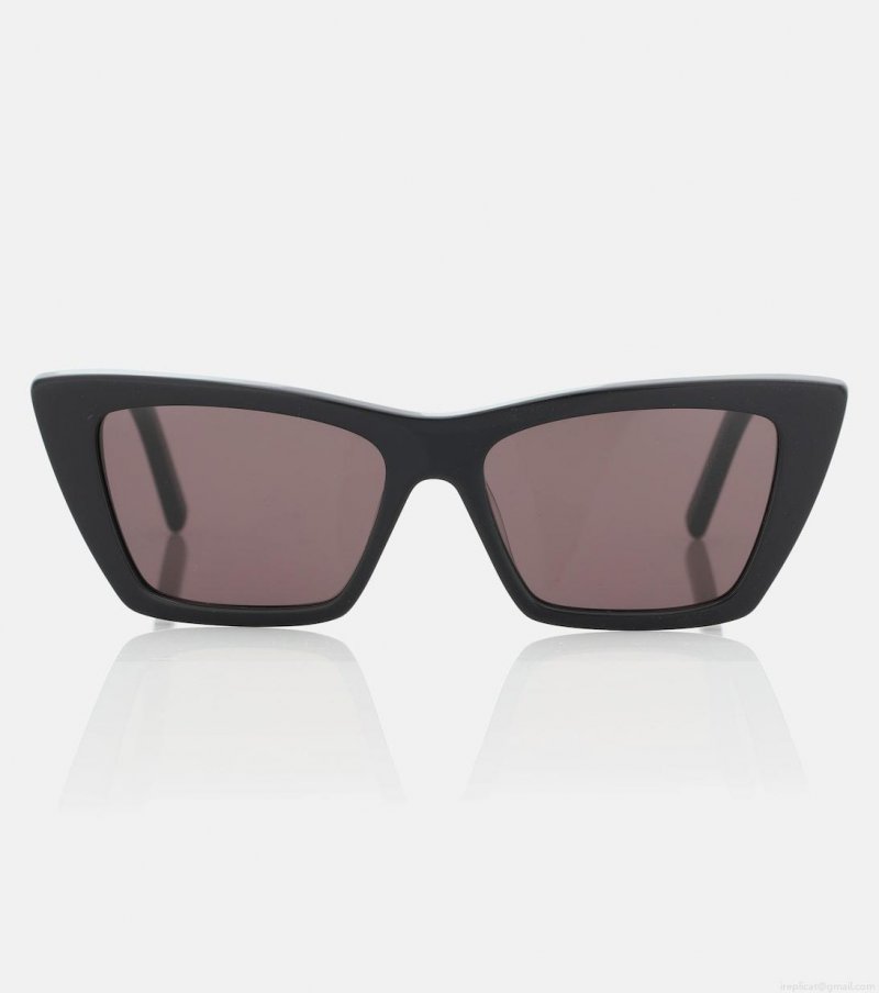 Saint Laurent's SL 276 Mica sunglasses fuse retro glamour with modern attitude. Crafted in Italy from sleek black acetate, the rectangular cat-eye design features 100% UV protected gray lenses and is finished with silver-tone branding engraved at the temple. Coordinate the structured style with tailored suits and fluid dresses alike.